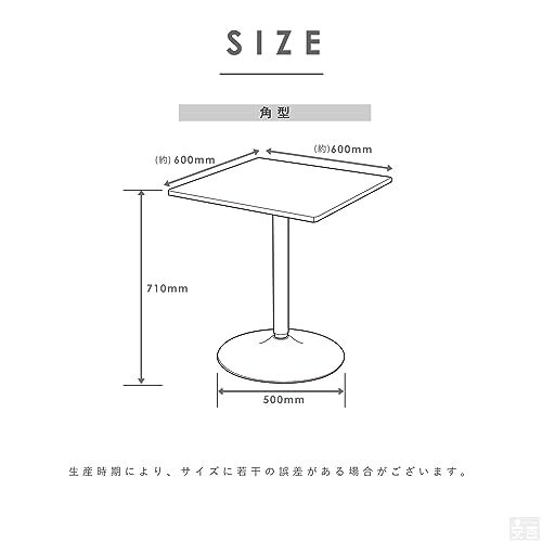 【サイズ】(約)600mm×600mm×高さ710mm 【天板の厚み】15mm 【台座径】(約)φ500mm 【重量】約8.1kg