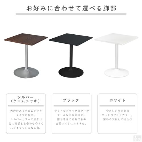 カフェテーブル 600×600×H710 スチール脚 黒脚 木目(ダークブラウン) 幅60cm ダイニングテーブル 机R