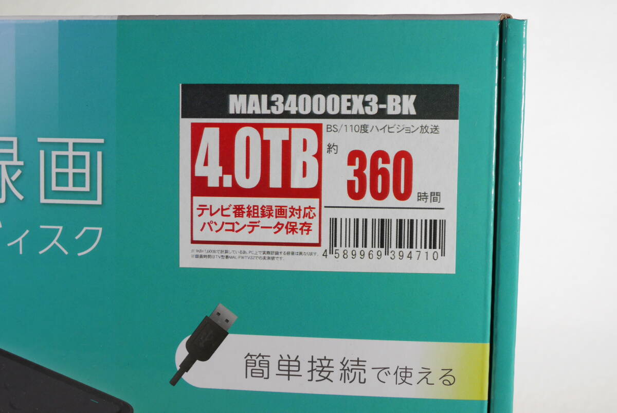 ★新品・未使用★ 4.0TB HDD 3.5インチ 外付け ハードディスク MAL34000EX3-BK テレビ録画対応 パソコンデータ保存用