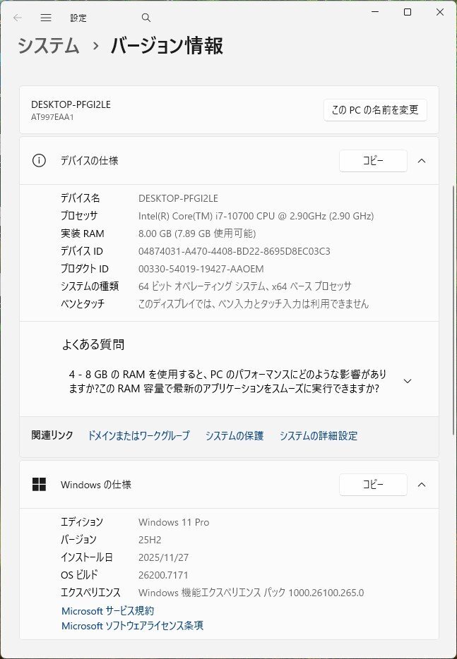 【 カ 】 ランク ●補足説明 本商品は中古品となります。 写真では分かりにくいキズ・汚れ・欠けなどの使用感があります。 予めご理解・ご了承頂きますようお願いいたします。 キズや落ちない汚れがあります。 型番シールの文字が少し消えています。 OS再インストール済みです。 キーボード・マウス・モニターなどは付いていません。 ※セットで中古在庫モニターを割安にてご用意可能です、取引メッセージにてお問い合わせください。 Office等のソフト、マイクロソフトアカウント、プロダクトキー等は付属しておりません。 弊社では設定など一切のサポートは出来かねますので予めご了承ください。 ※写真10枚目のような状態で梱包し発送いたします。 ※パソコン専用梱包の為、同梱できません。予めご了承ください。 ▼△▼△▼△▼△▼△▼△▼△▼△▼△▼△▼△▼△▼△▼△▼△▼△▼△▼ ◇ ご入札の前に、以下の点を予めご了承ください ◇ ・中古品の為、新品と同様の状態・使用感は保証いたしかねます。 ・内部のクリーニングは行っておりません。 ・中古品の為、タッチパッドやボタン等の使用感に関しては保証の対象外となります。 ・写真をご覧頂く環境によって機器の色味に若干の差が出ることがございます。 ・写真に写るものが全てとなります。付属品は写真にてご確認ください。 ・ご了承いただける場合にのみご入札をお願いいたします。 ▼△▼△▼△▼△▼△▼△▼△▼△▼△▼△▼△▼△▼△▼△▼△▼△▼△▼ | ||||||||||||||||||