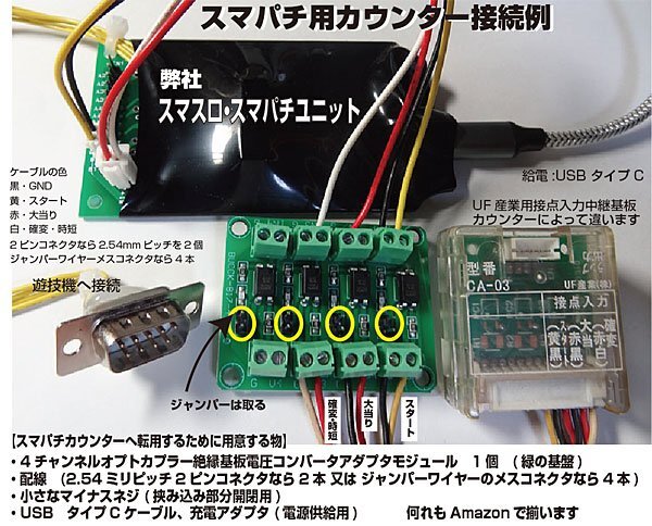・パチンコ用カウンターのデータ端子は電圧出力タイプです、主流の接点入力タイプには外部端子部品が必要です、必要な部品は出品時の写真に掲載していますので参考にしてください。