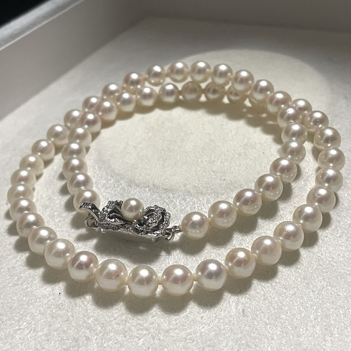 あこや真珠 約6.5-7.0mm ネックレス シルバー金具 Pearl Jewelry necklace 43cm 27.2g アコヤ 本真珠 パール SILVER 474-0440510