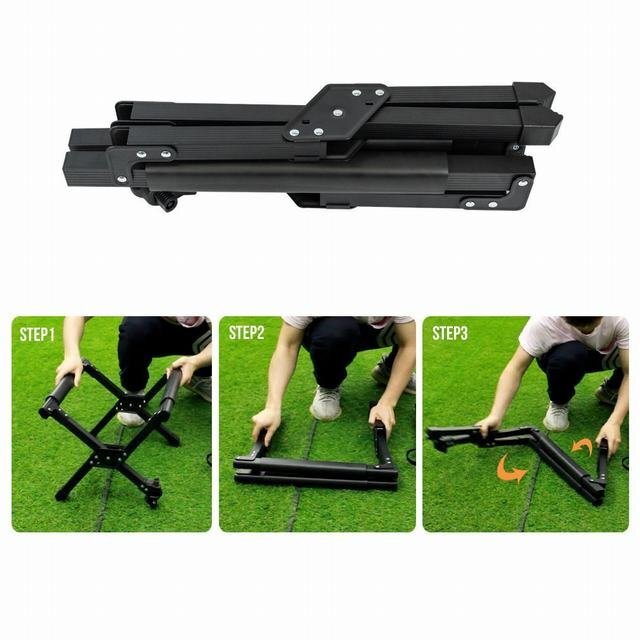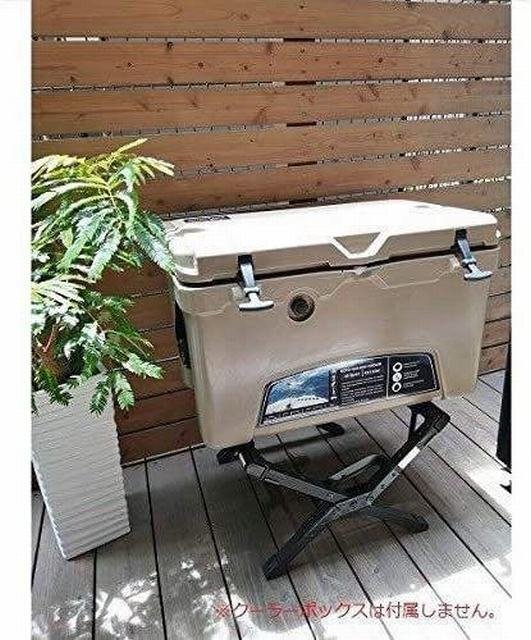 こちらはキャンプなどにあるととても便利なクーラーボックススタンドになります。 載せる部分にはクッションスポンジを採用ししっかりとクーラーボックスを置く事が出来ます。 クーラーボックスを地面にそのまま置くと、地面の熱が伝わり、クーラーボックスの保冷力が損なわれてしまいます。 地面の温度が高い夏場は、とくにクーラーボックス内の温度が上がりやすい時期。 一方でクーラーボックススタンドに乗せておけば、保冷力の高さにこだわって選んだクーラーボックスの性能が無駄になることはありません。 重いクーラーボックスを置くときも、高さがあるぶん腰に負担がかかりません。 収納時にコンパクトにたためます。また専用バッグも付いており小さく畳めて持ち運びにもとても便利です。 高さは三段階に調整可能。 (三段階)使用時: 約 幅50.5x奥行47x高さ31cm 約 幅50.5x奥行38.5x高さ40cm 約 幅50.5x奥行30.5x高さ45.5cm