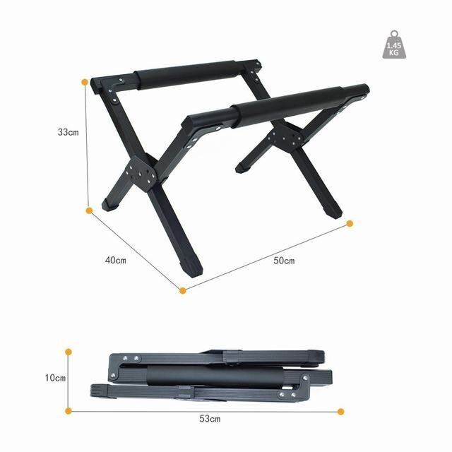 収納時:W56xD11xH9cm 耐荷重:50kg 素材:フレーム/アルミ合金?黒色アルマイト 付属品:収納ケース"