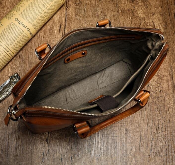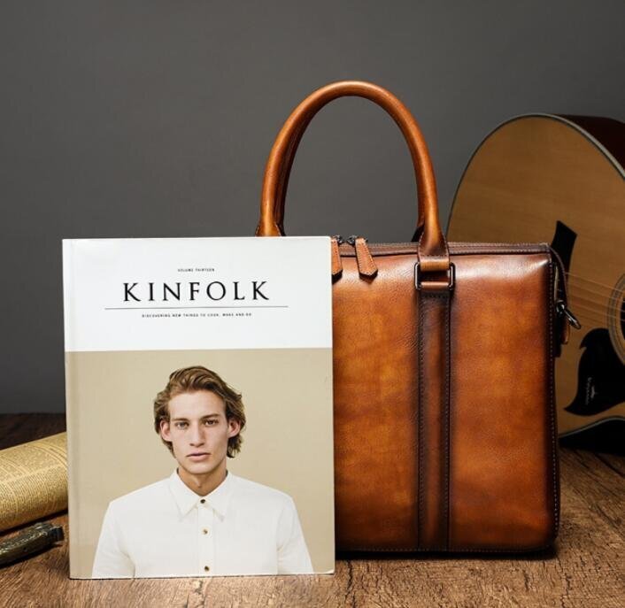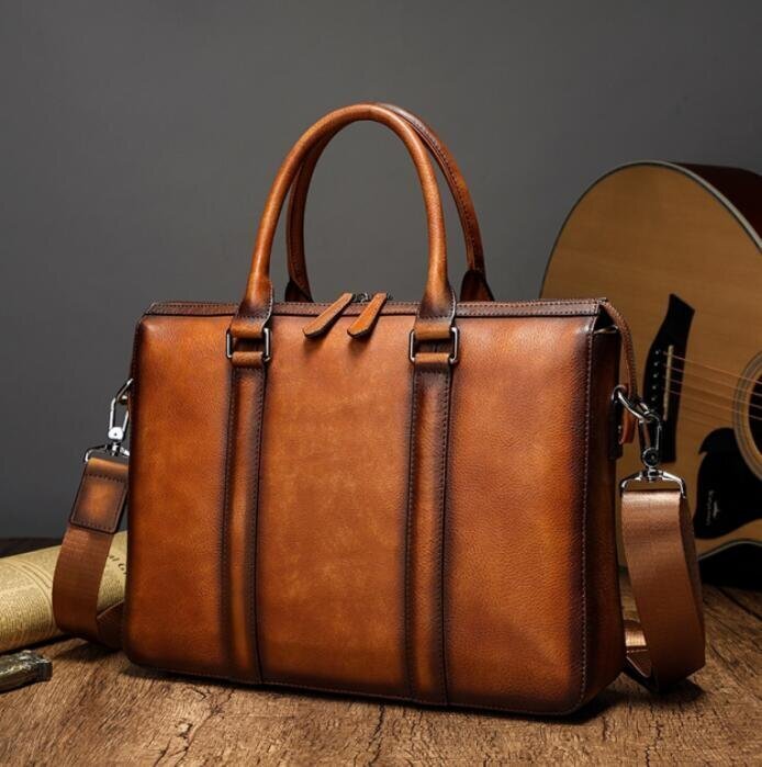 人気美品☆手染め ヌメ革 ハンドメイド メンズバッグ 本革 ビジネスバッグ サイズ対応 14ノートパソコン入れる可能 通勤 xhw0039