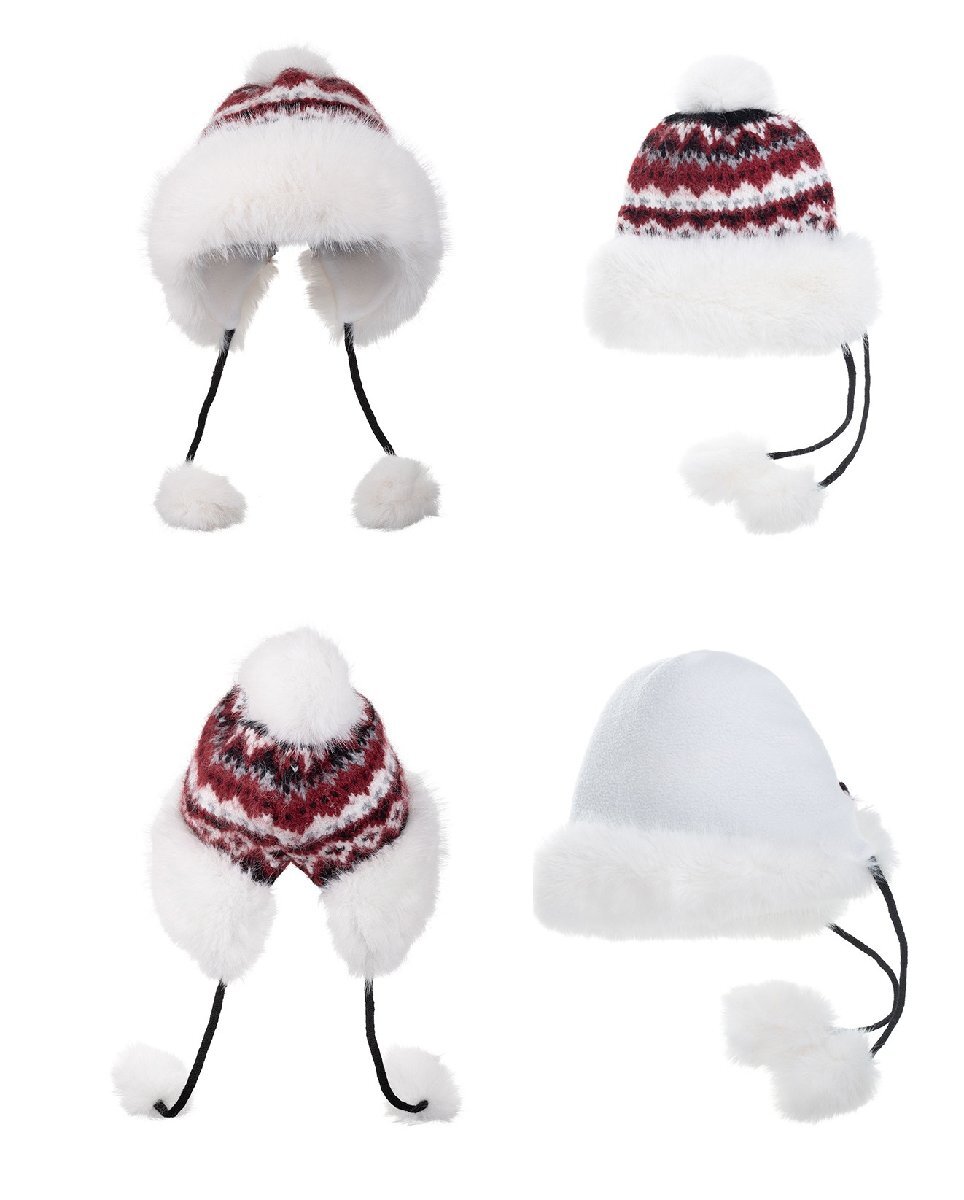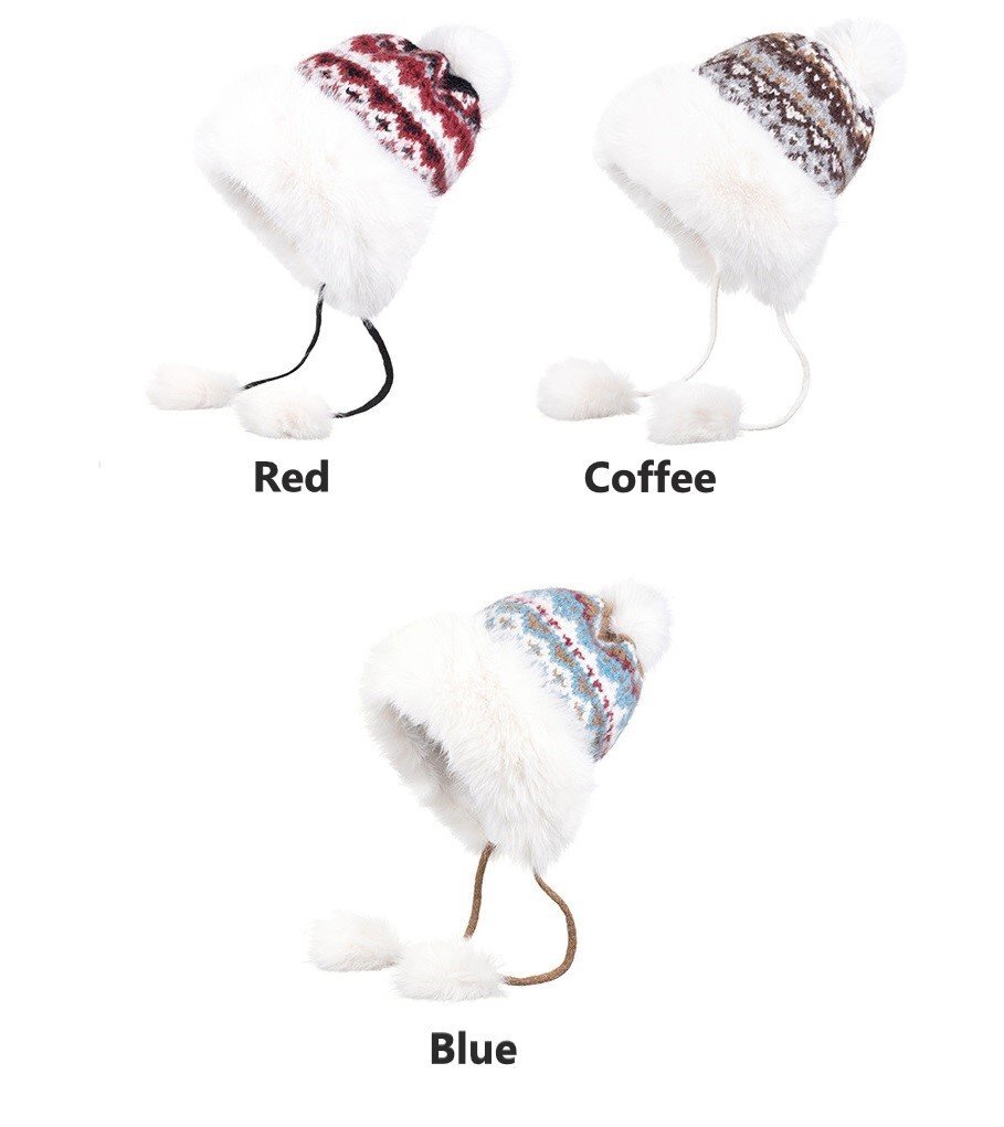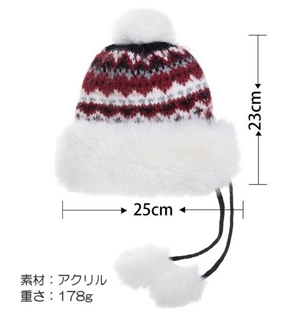 ニット帽 レッド レディース 秋冬 厚手 帽子 ニット 柔らか キャップ hat アウトドア ポンポン付き あったかい オシャレ 冬 耳当て n841