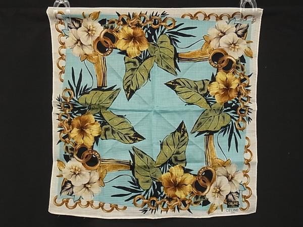 ■美品■ CELINE セリーヌ マカダム フラワー 花柄 コットン100% ハンカチ ハンカチーフ 2点セット DH6409