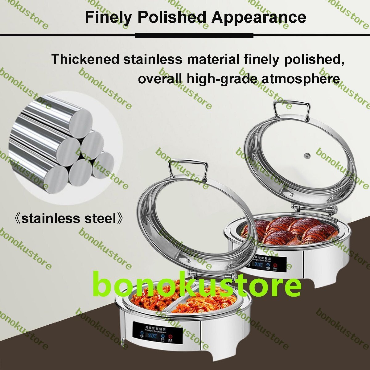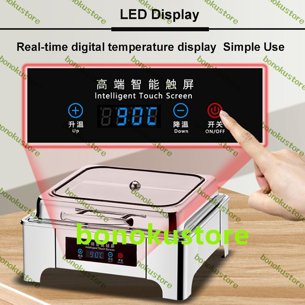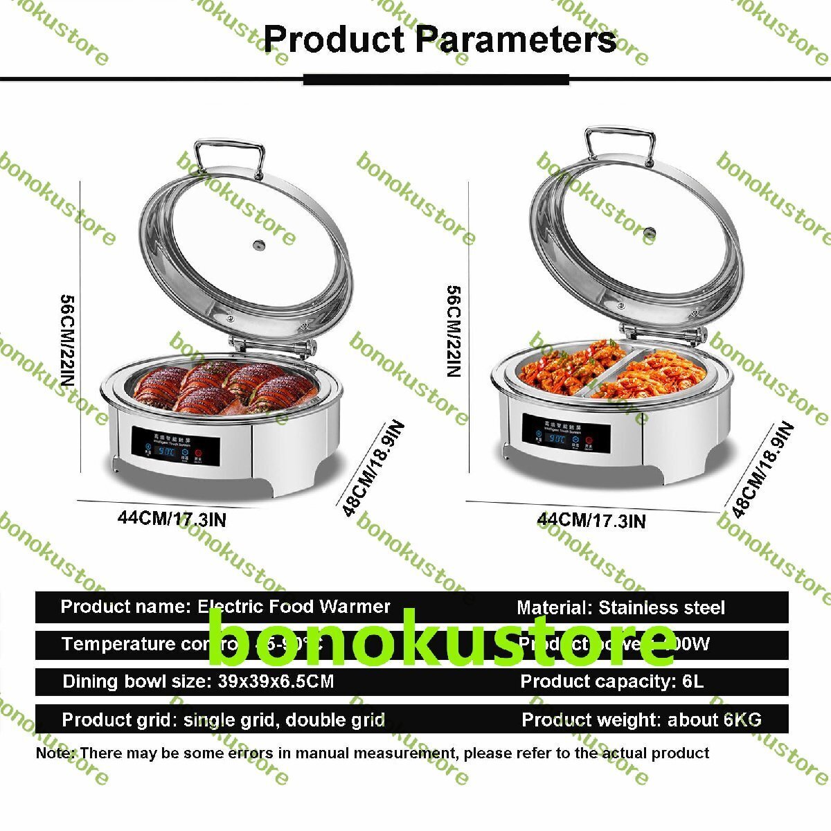 結婚式、パーティー、ケータリングイベントを主催する場合、当社の電気チェーフィングディッシュビュッフェセットは、食べ物を温かく保ち、すぐに提供できる素晴らしいソリューションです。特徴:この6L電気チェーフィングディッシュビュッフェセットで、食べ物を温かく保ち、すぐに提供できます。タッチスクリーンディスプレイパネルで温度を簡単に制御し、毎回おいしい料理を提供できます。ステンレススチール製のこの食品保温ポットは、ケータリングイベントやパーティーに適しています。透明な蓋により、食べ物を温かく保ちながら簡単に見ることができます。仕様:製品名: 電気チェーフィングディッシュ素材: ステンレススチール製品電力: 400Wタッチスクリーン温度制御: 45?90°C蓋スタイル: 透明蓋トップ製品容量: 6L製品グリッド: シングルグリッド、ダブルグリッドダイニングボウルサイズ: 39x39x6.5CM/15.3x15.3x2.5IN製品サイズ:48x44x56CM/18.9x17.3x22IN製品重量:約6KG製品機能:料理を温かく保ちます注意:手動測定では多少の誤差がある場合がありますので、実際の製品を参照してくださいパッケージに含まれるもの:1 *フードウォーマー5 *フードクリップ(12インチ)
