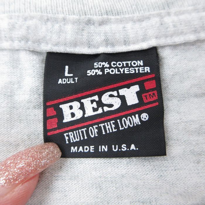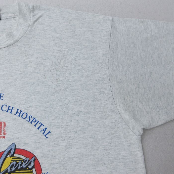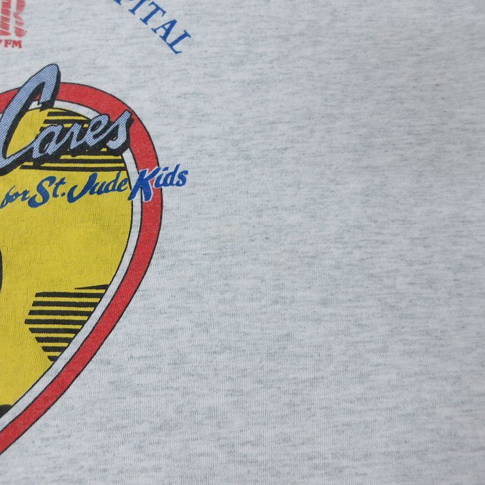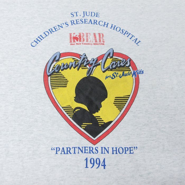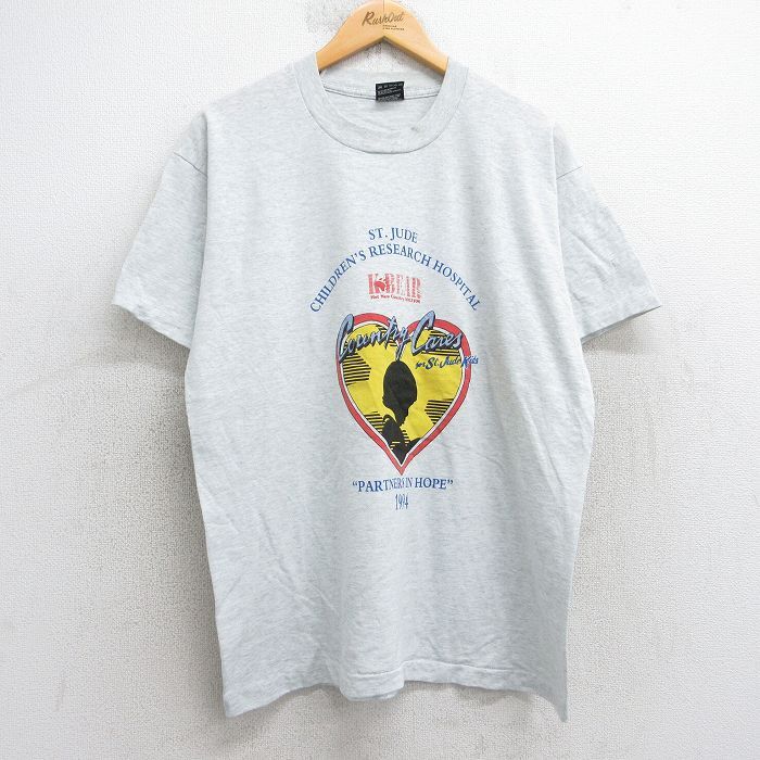 【商品名】 L★古着 フルーツオブザルーム 半袖 ビンテージ Tシャツ メンズ 90年代 90s ハート Country Cares クルーネック USA製 薄グレー 霜降り