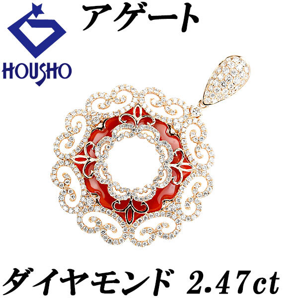 商品名 ダイヤモンド ペンダントトップ アゲート K18ピンクゴールド 透かし レース アラベスク