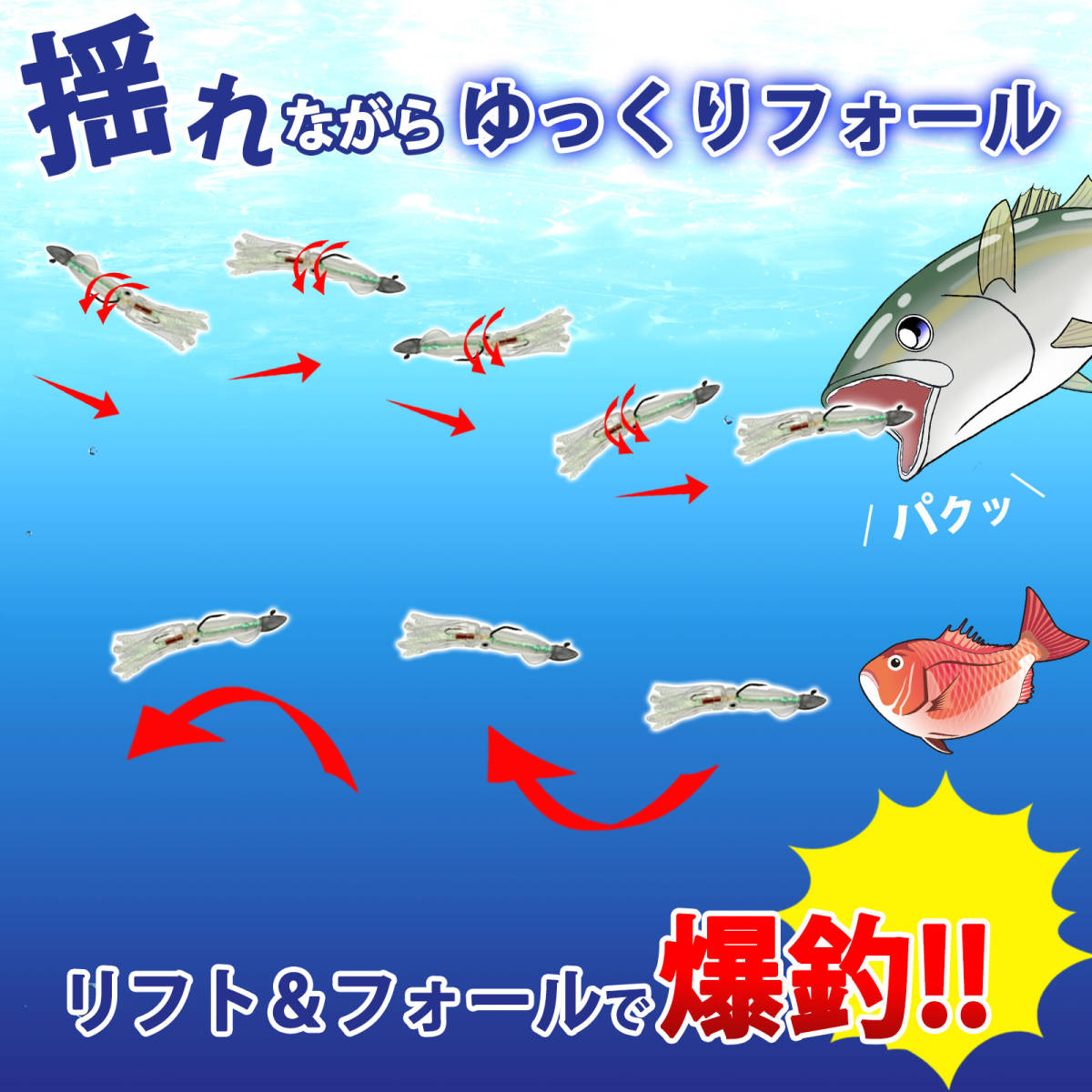 ただ巻きでも釣れますが、エギングのようにシャクリながら動かす方が釣果が上がっています。