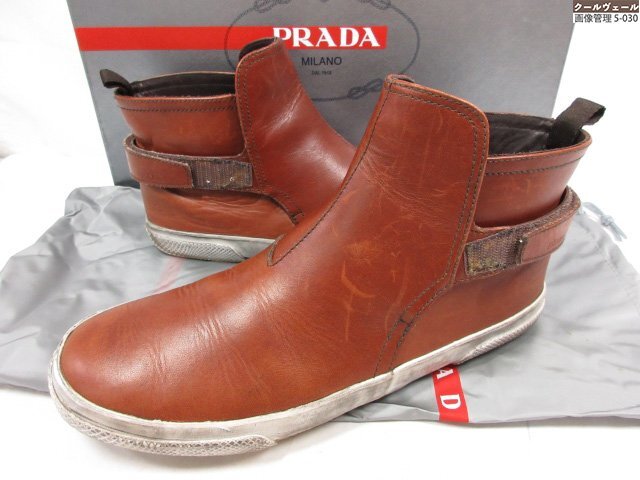美品【プラダスポーツ PRADA SPORT】 4T2243 プレーントゥ バックストラップブーツ 紳士靴 (メンズ) size6 ブラウン系 ◇30MZA8114◇