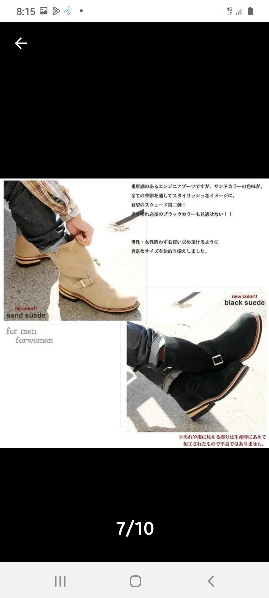 ■ラフなスエード(本革)の質感・買ったその日から「こなれ感」が出るように、傷や汚れなどを残し あえてラフな質感に加工。・スエード特有の柔らかい質感が特徴。・レザーモデルと比べると足馴染みが早いので、エンジニアビギナーにもおススメです!
