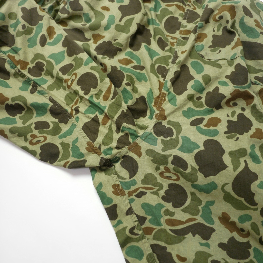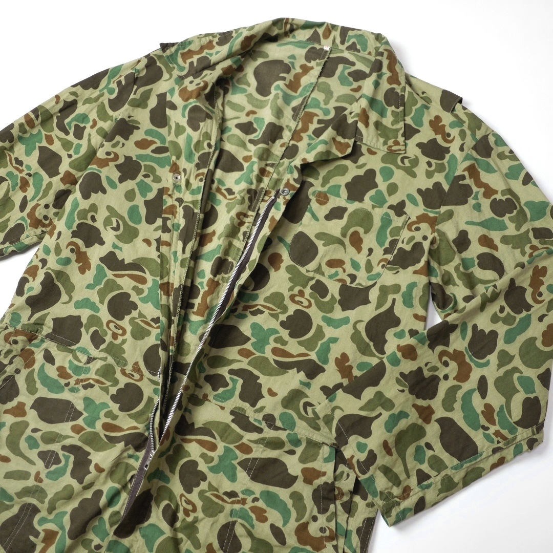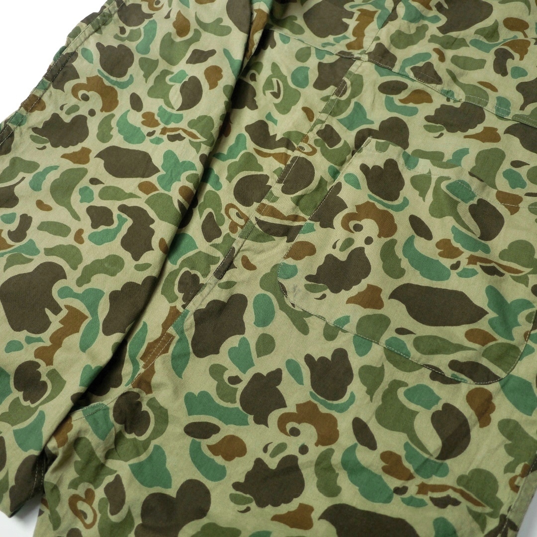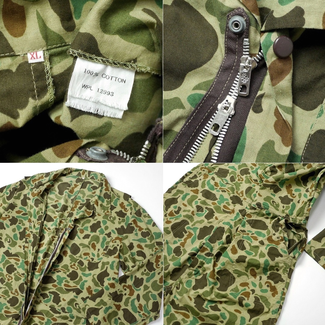■ブランド 70s、WPL12993、(BLACK SHEEP BRAND?)、OOO ZIP ■カラー ダックハンターカモフラージュ(緑、薄緑色、茶、薄茶色) ■素材 100%COTTON ■詳細 アメリカで購入したダックハンターカモのオールインワン/ツナギです。 70年代ごろのアイテムでメインタグありませんが、WPLナンバーとディテールから判断してブラックシープブランドではないかと思います。 生地はペラペラ薄手のオールコットン、ジッパーはピンロックのダブルジップです。 近年人気のダックハンター迷彩柄、ツナギは結構レアだと思います。 ■状態 多少の薄汚れ(ヒップレーン、バックポケット)、ミシンリステッチ(裾先、股下)、裏側ロック縫いにホツレ(左肩フチ、サイドポケットフチ)、タグにホツレ、スナップにくすみ、製織時に生じた小さな織傷/ネップあと所々にあり。 特筆すべきダメージはなく良好です。 ■サイズ 表記 XL(実寸 W43 L34、着用感XL相当 *実寸参考下さい) 腕や脚はそこまで太くなくスッキリした感じのつくりです。イイ感じのビッグサイズ/オーバーサイズです。 ウェスト 55cm×2 股下 86cm 裾幅 21.5cm ワタリ 34cm ヒップ 59cm 肩幅 53cm 身幅 59cm-65cm 脇袖丈 48cm 肩袖丈 57cm 首元-股下 100cm 首元-裾先 168cm ウェスト-裾先 108cm ■注意事項 状態は細かく確認しておりますが、傷や汚れの見落とし、実寸誤差、色味差異など生じる場合がございます。 不明な点がありましたら入札前にご質問下さい。 商品にあわせて洗濯やクリーニングメンテナンスを施しておりますが、ビンテージやアンティークなど中古品になりますので特性のご理解をお願いします。 |