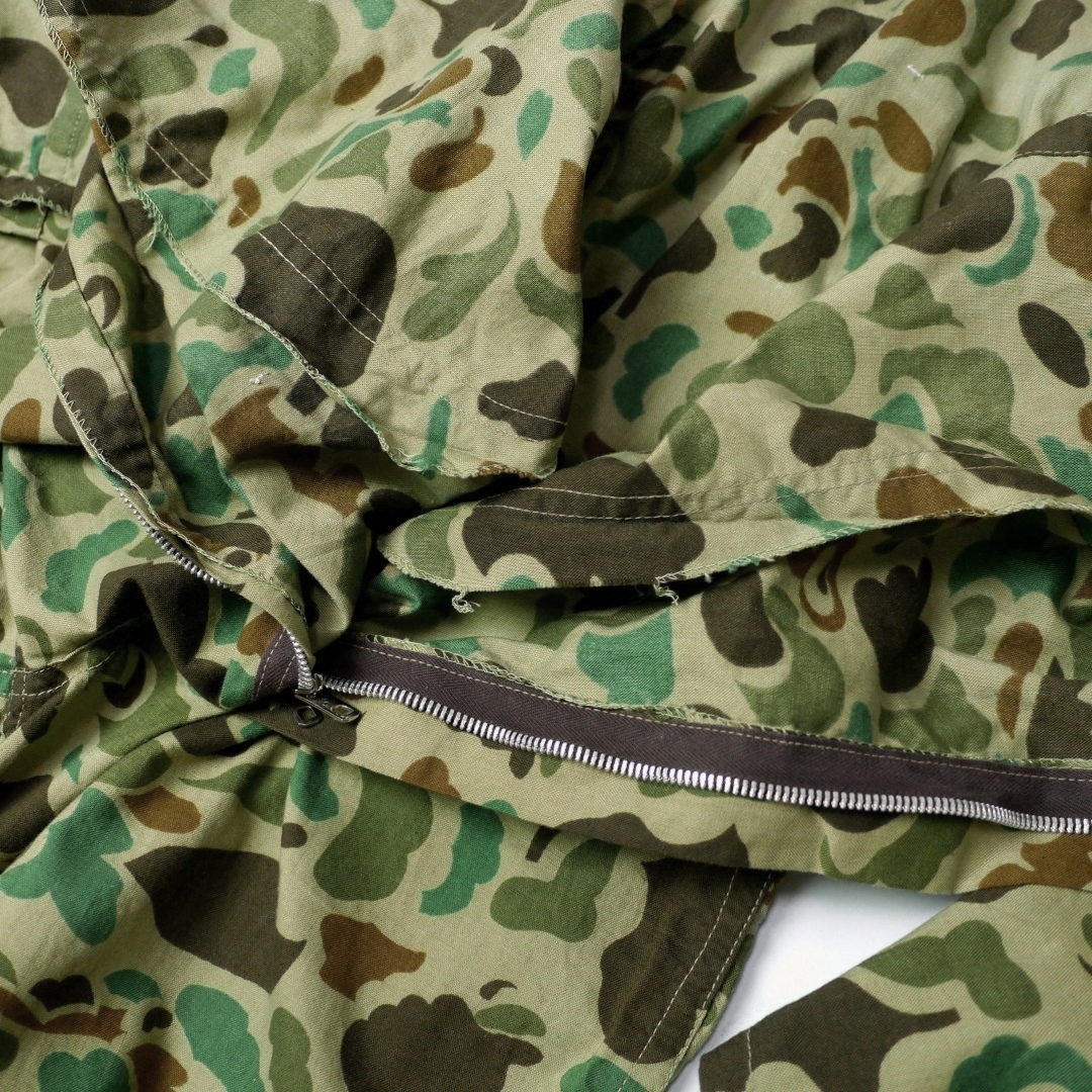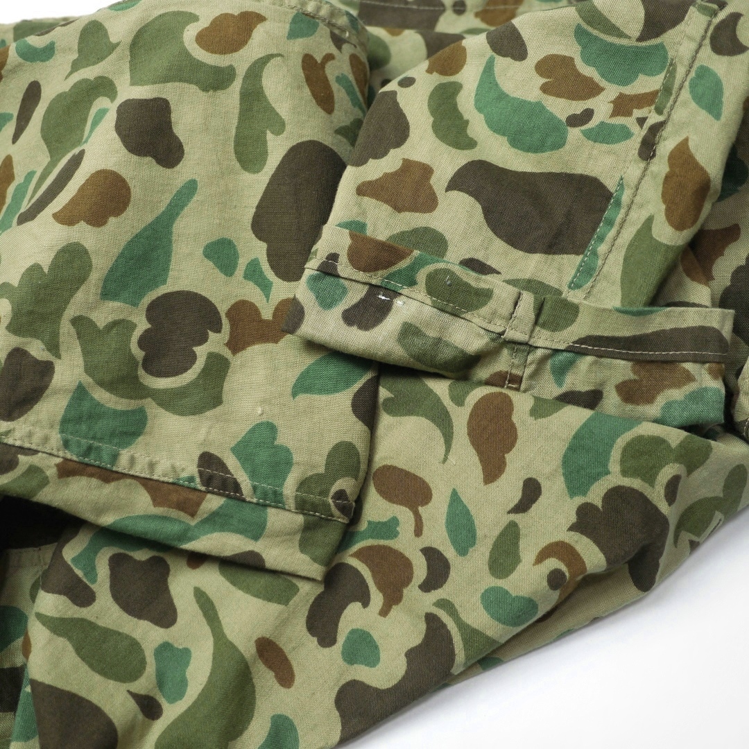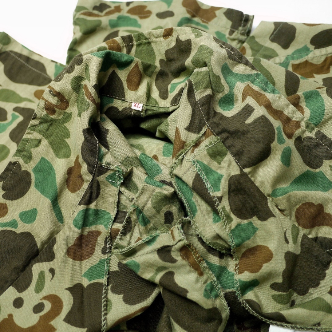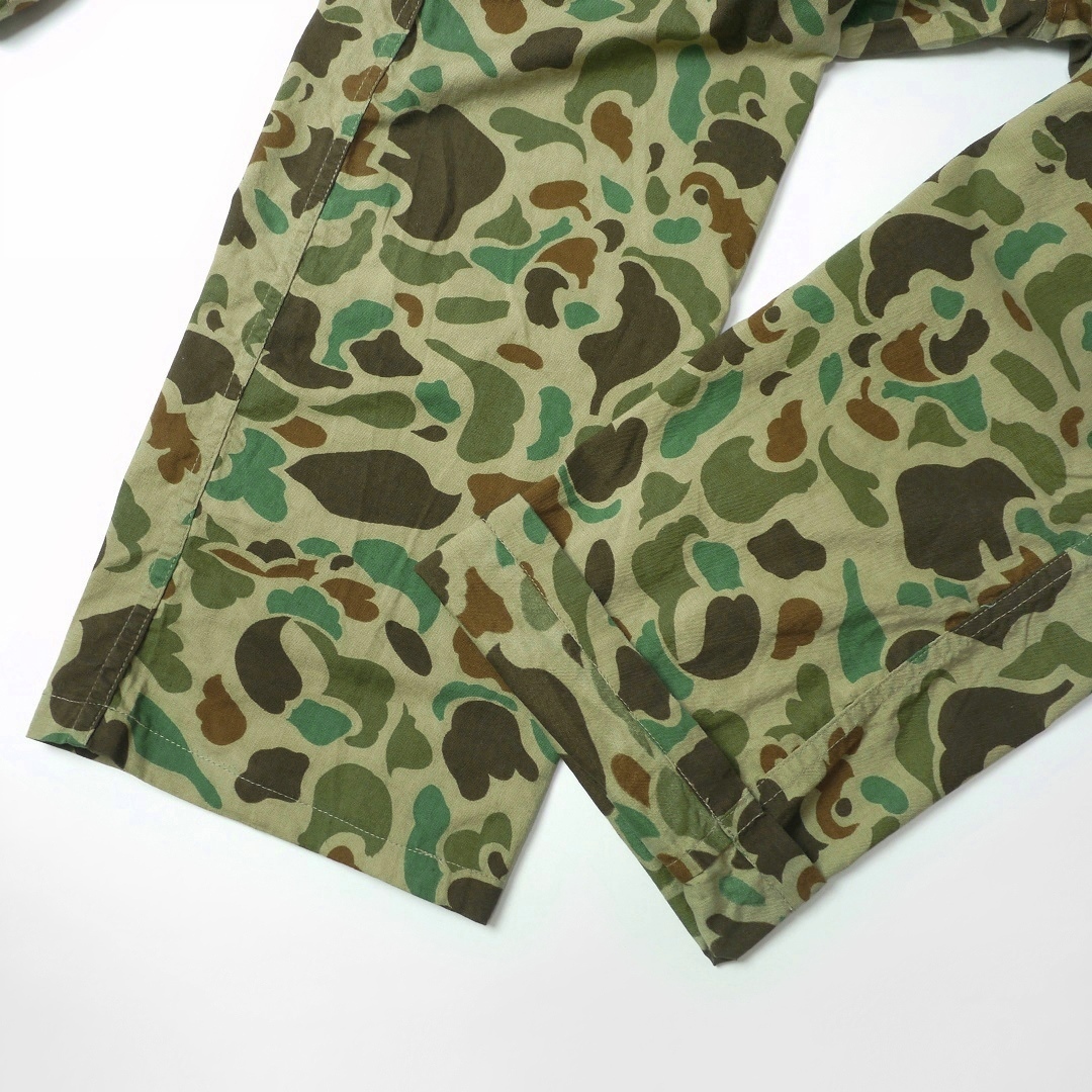 ■ブランド 70s、WPL12993、(BLACK SHEEP BRAND?)、OOO ZIP ■カラー ダックハンターカモフラージュ(緑、薄緑色、茶、薄茶色) ■素材 100%COTTON ■詳細 アメリカで購入したダックハンターカモのオールインワン/ツナギです。 70年代ごろのアイテムでメインタグありませんが、WPLナンバーとディテールから判断してブラックシープブランドではないかと思います。 生地はペラペラ薄手のオールコットン、ジッパーはピンロックのダブルジップです。 近年人気のダックハンター迷彩柄、ツナギは結構レアだと思います。 ■状態 多少の薄汚れ(ヒップレーン、バックポケット)、ミシンリステッチ(裾先、股下)、裏側ロック縫いにホツレ(左肩フチ、サイドポケットフチ)、タグにホツレ、スナップにくすみ、製織時に生じた小さな織傷/ネップあと所々にあり。 特筆すべきダメージはなく良好です。 ■サイズ 表記 XL(実寸 W43 L34、着用感XL相当 *実寸参考下さい) 腕や脚はそこまで太くなくスッキリした感じのつくりです。イイ感じのビッグサイズ/オーバーサイズです。 ウェスト 55cm×2 股下 86cm 裾幅 21.5cm ワタリ 34cm ヒップ 59cm 肩幅 53cm 身幅 59cm-65cm 脇袖丈 48cm 肩袖丈 57cm 首元-股下 100cm 首元-裾先 168cm ウェスト-裾先 108cm ■注意事項 状態は細かく確認しておりますが、傷や汚れの見落とし、実寸誤差、色味差異など生じる場合がございます。 不明な点がありましたら入札前にご質問下さい。 商品にあわせて洗濯やクリーニングメンテナンスを施しておりますが、ビンテージやアンティークなど中古品になりますので特性のご理解をお願いします。 |