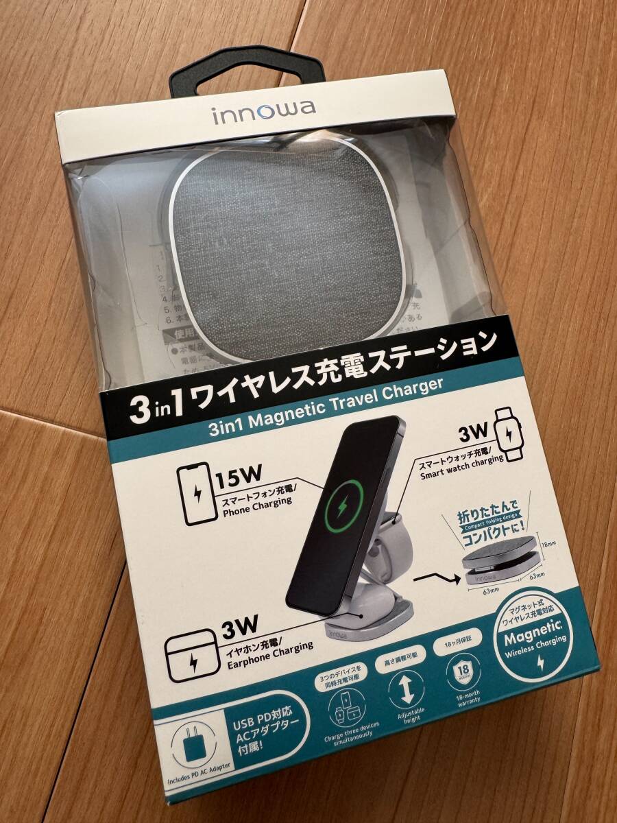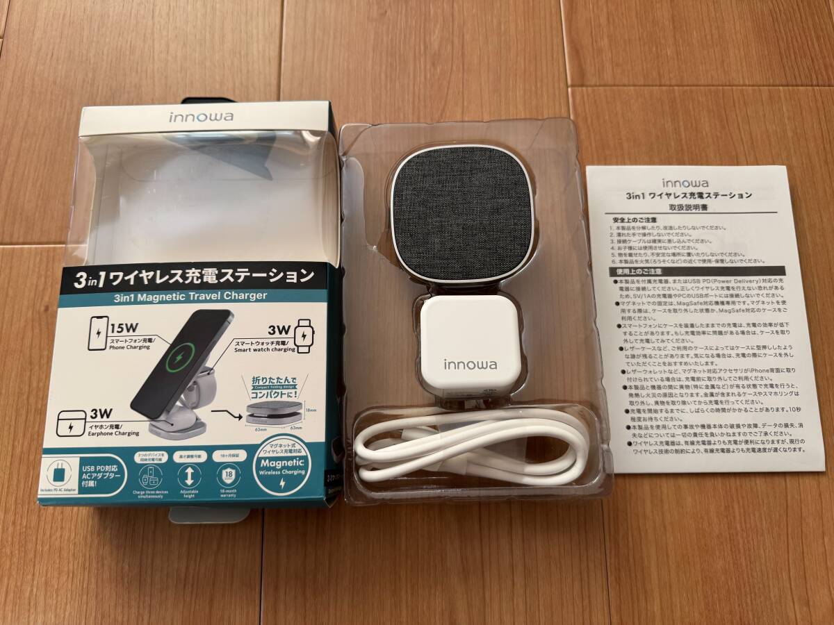 ☆innowa 3in1 ワイヤレス充電ステーション MagSafe対応 iPhone/Apple Watch/AirPods 同時充電 折りたたみ式 PD対応 ACアダプター付属 PSE認証済 中古超美品になります。