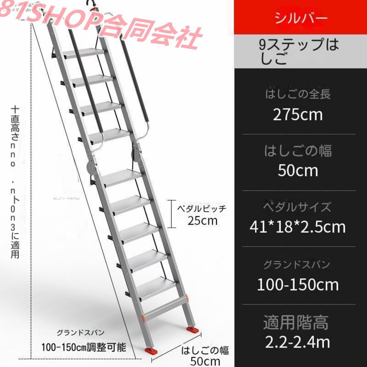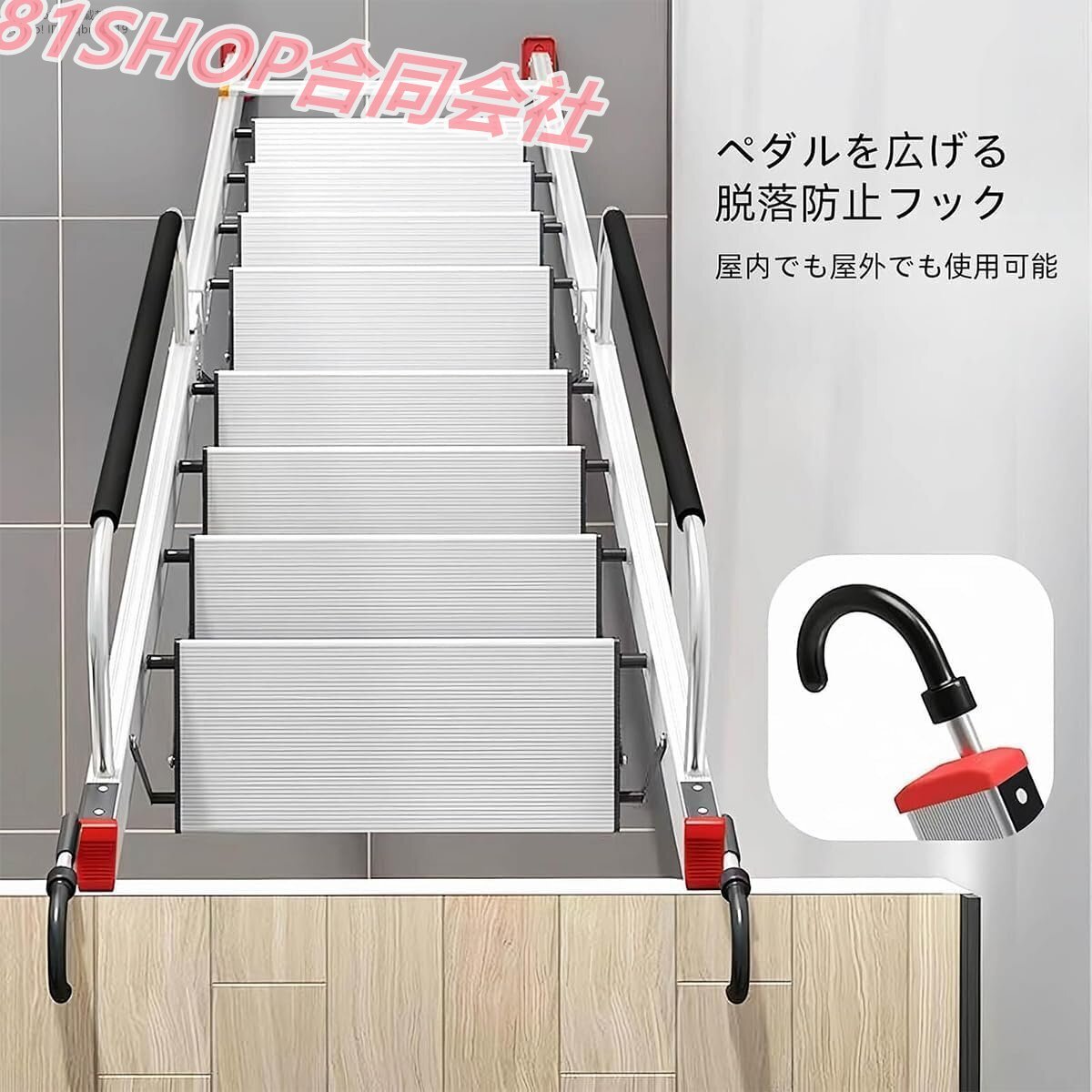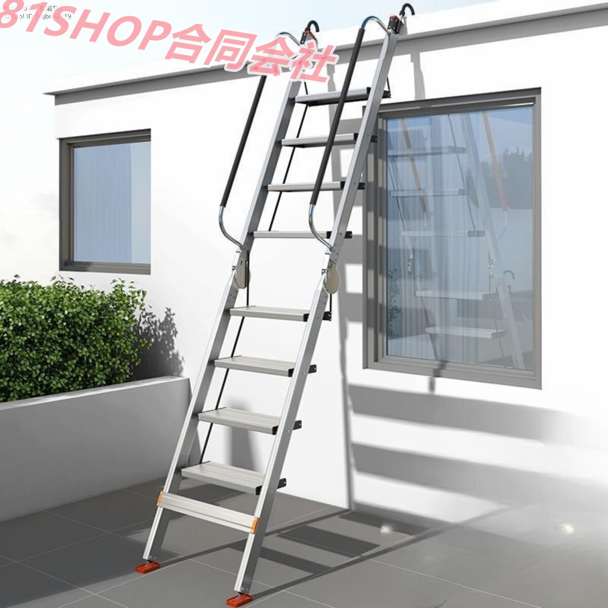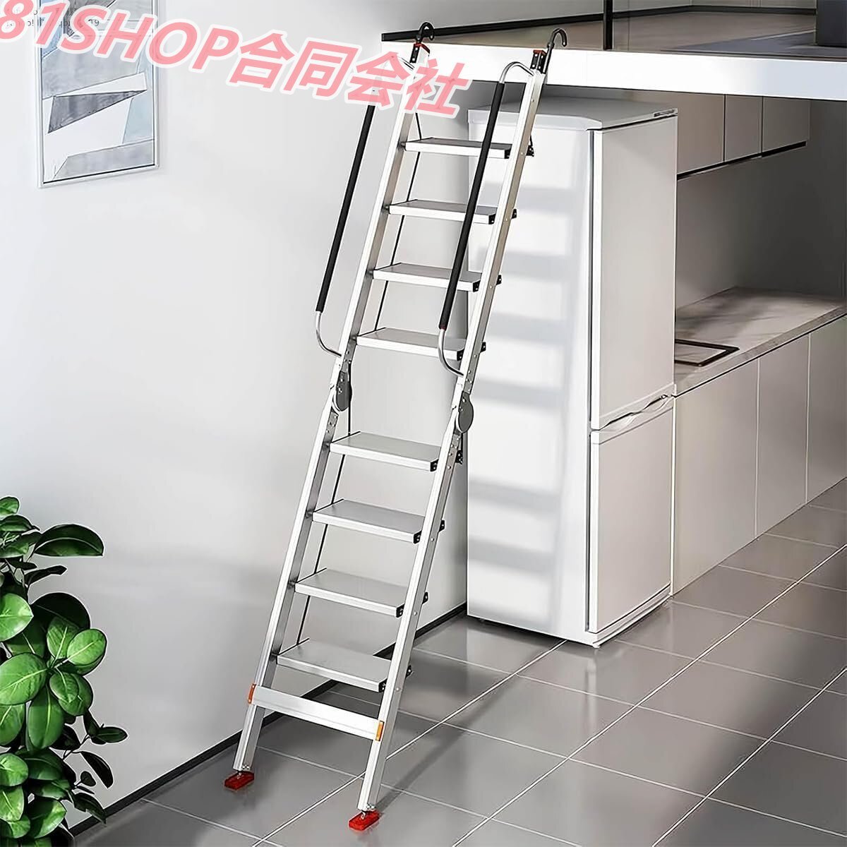 屋根裏階段軽量アルミ合金折りたたむ伸縮はしご 脚立はしご 多機能ロフトはしご 屋内 滑り止めゴム足 ロフトラダー バルコニー 階段 壁掛屋