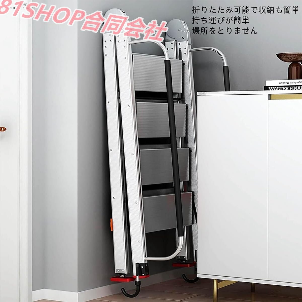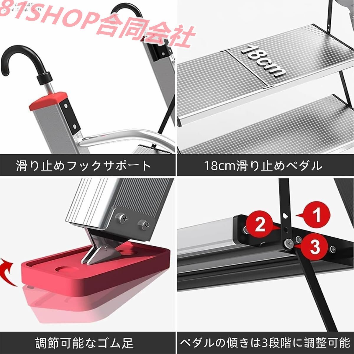 【揺れ防止、滑り防止】:脚先は滑り止め設計を採用し、ずれたり滑ったりしにくいゴム素材のカバー付きです。各踏み板面は凸凹の構造、安心して上り下りできる。梯子の一番下の横棒が広くなっているので、階段を下りるときに踏ん張る心配がない。