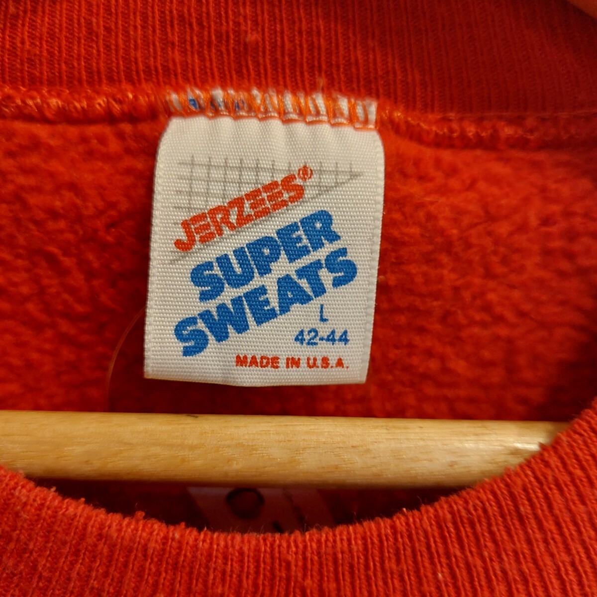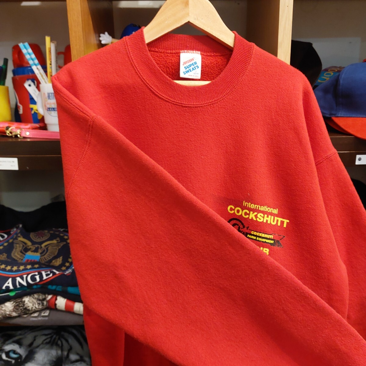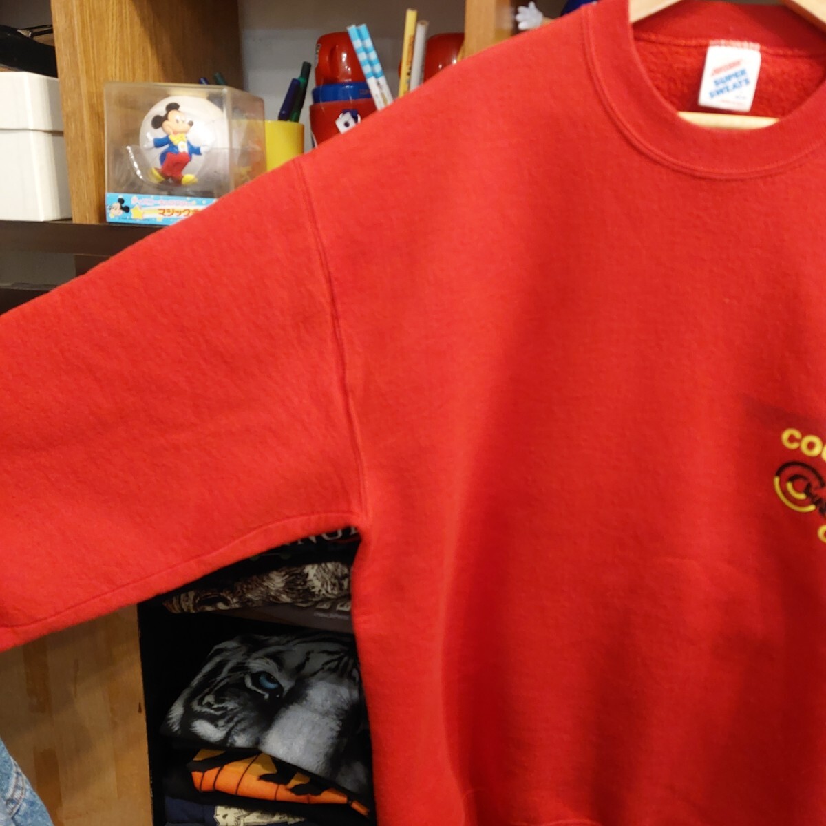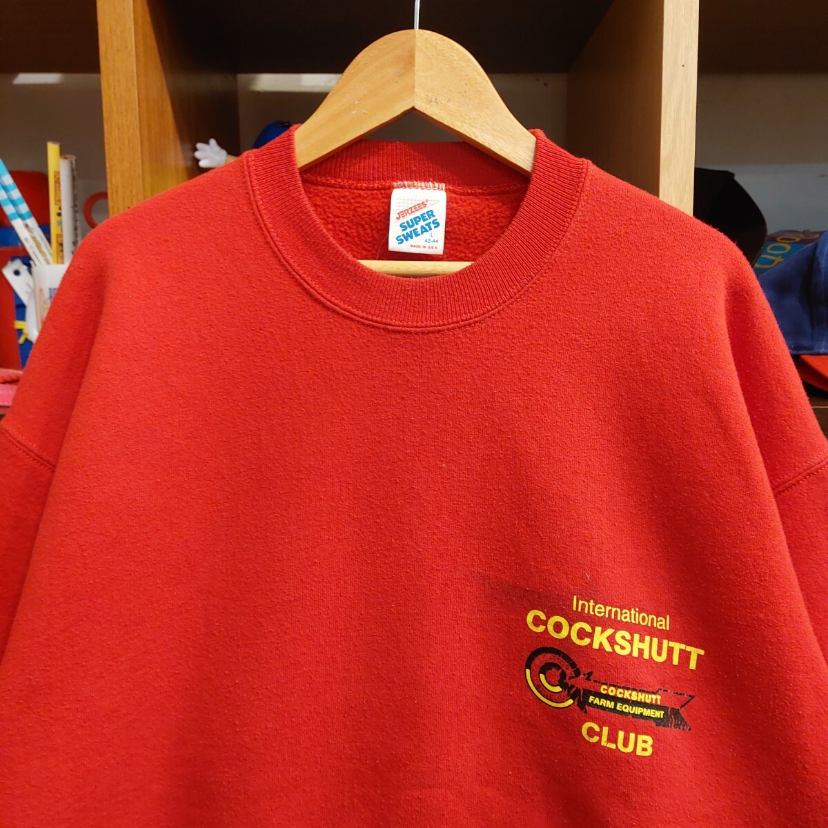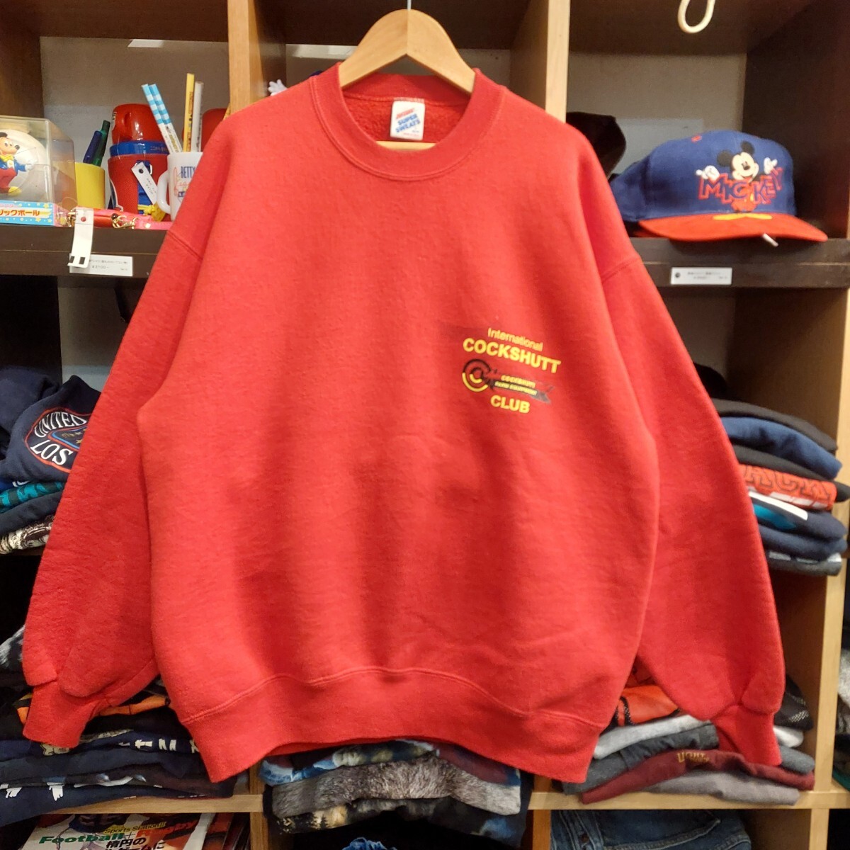 ■商品      : JERZEES ジャージーズ 90年代 USA製 COCKSHUTT CLUB プリント スウェット トレーナー クルーネック メンズL 赤 レッド 07B0901
