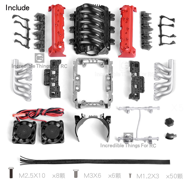 GRC製 G164AR【赤】 1976 1/10 427 SOHC V8モデルエンジン TRX4対応 車種別適合(Model# 82056-4) ディフェンダー