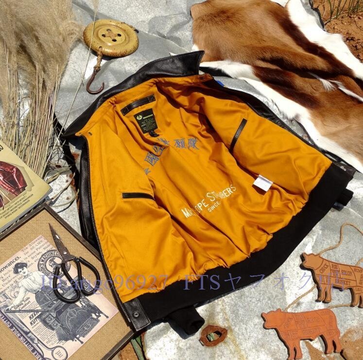 A5518☆新品フライトジャケット レザージャケット カウハイド 牛革 ライダースジャケット 本革 革ジャン スカジャン メンズ 3色 S~4XL