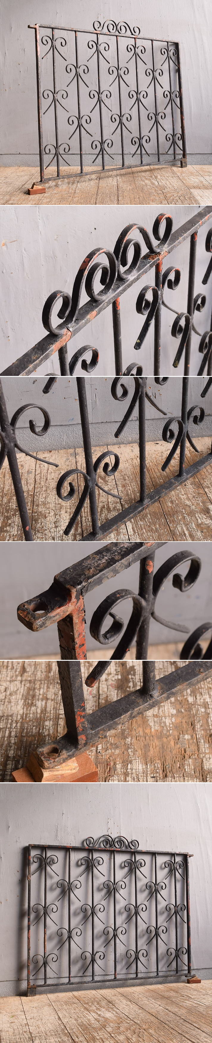 イギリスの蚤の市で見つけてきた古い、アイアンフェンスです 。劣化した塗装や錆びがとても よい 風合いです。 お部屋の間仕切り壁面 ディスプレイやガーデンゲートにオススメです。 お花屋さんや雑貨屋さん等 ショップディスプレイのアクセントにもオススメです。 大きなダメージ無くコンディション良好です。 ひっかけか金物受け部分が欠損しています(画像参照)
