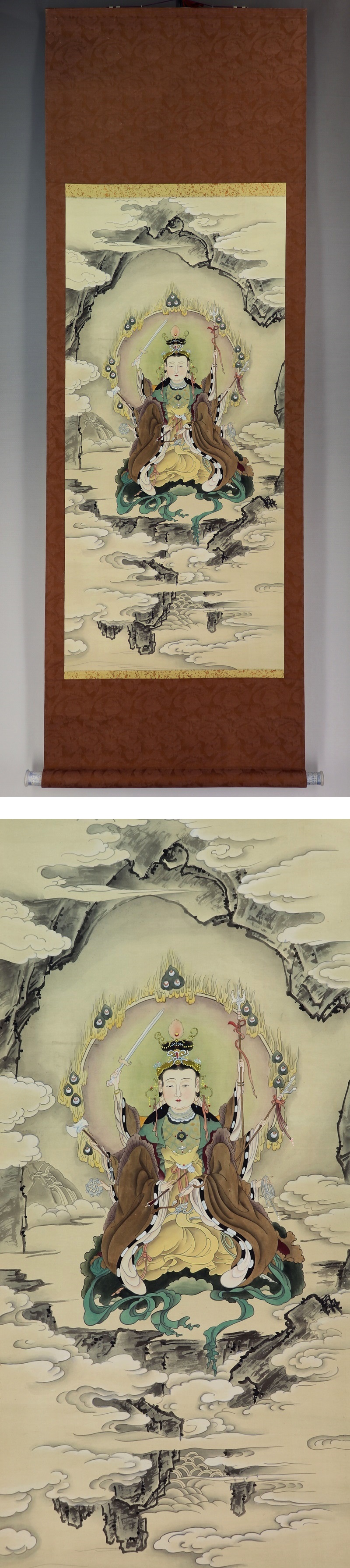 | №2105148 希少【肉筆】仏画【八臂弁財天坐像】◆絹本◆合箱◆掛軸 | |