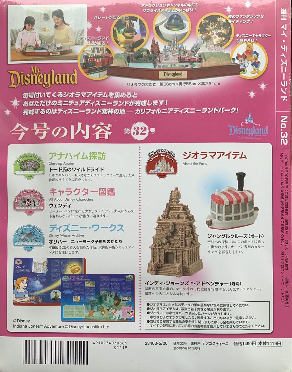 2006年にデアゴスティーニ・ジャパンから発売されたアメリカカリフォルニア州アナハイムにあるディズニーランドのジオラマを完成させるシリーズ 週刊 マイ・ディズニーランドの第32巻 ジャングルクルーズ/インディ・ジョーンズ・アドベンチャーです。