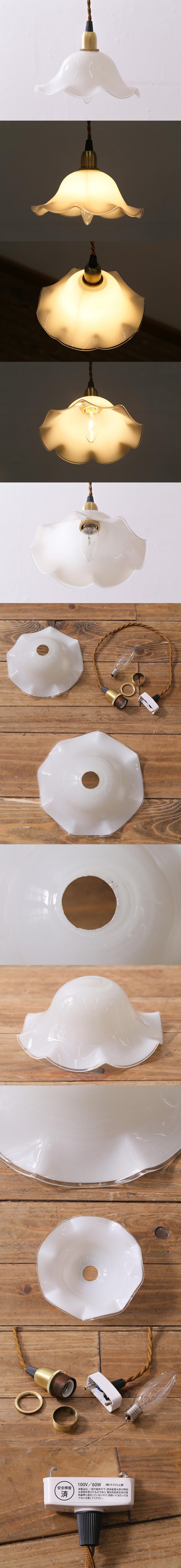 R-039905 イギリスヴィンテージ照明 上品なフリルシェードのペンダントライト(ランプシェード、天井照明)