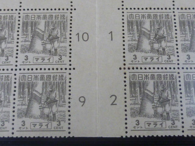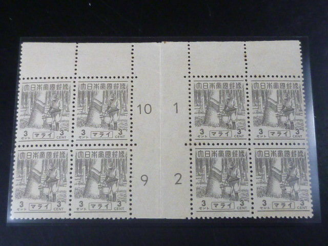 19 S №44 日本占領地 南方地区 マライ 1943-44年 #9M3 3c ガッターマージン 8枚ブロック 未使用NH