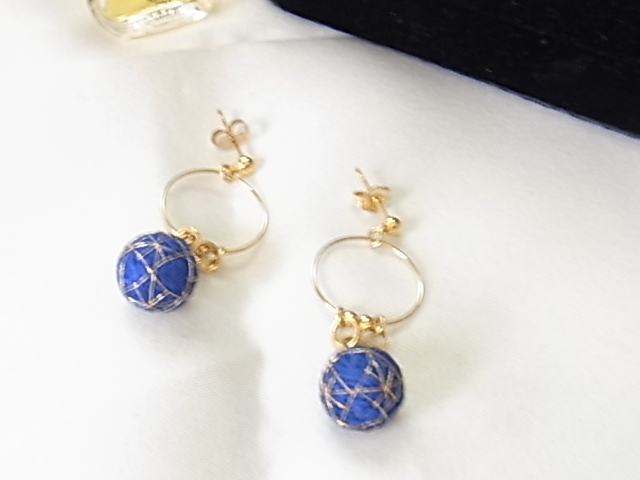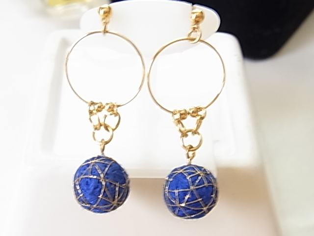 爽やかなブルー 青 品質不明 ストーン調 耳元で揺れるデザイン ピアス☆