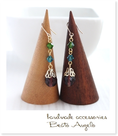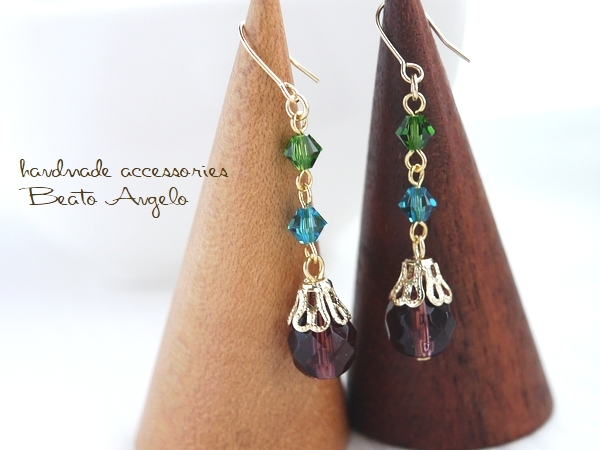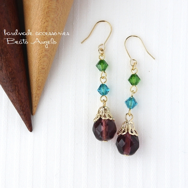 ◆◆+angelo+チェコビーズとスワロフスキーのピアス(p-433)アメジスト G パープル FP001 チタン 樹脂 イヤリング