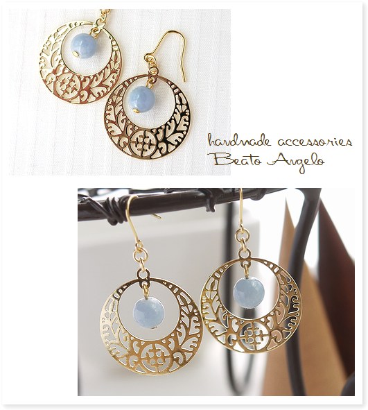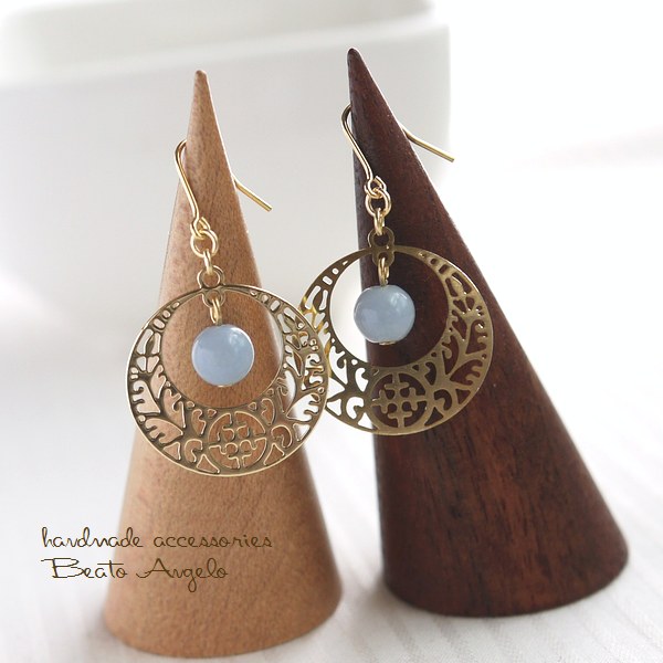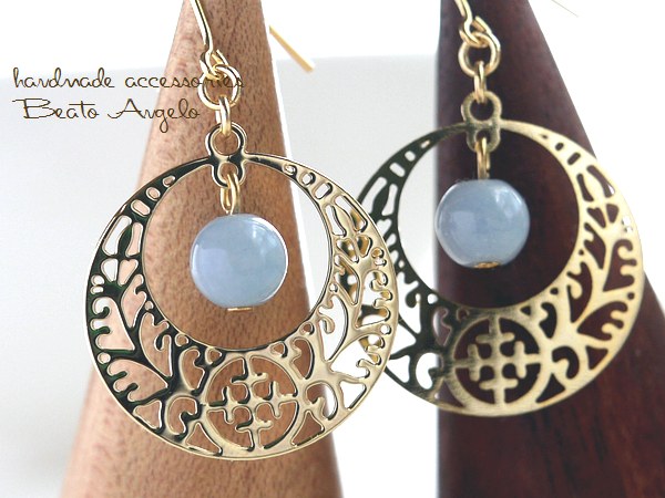 天然石エンジェライトとC透かしのピアス(p-040)GC