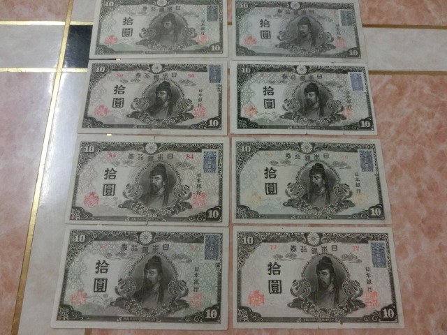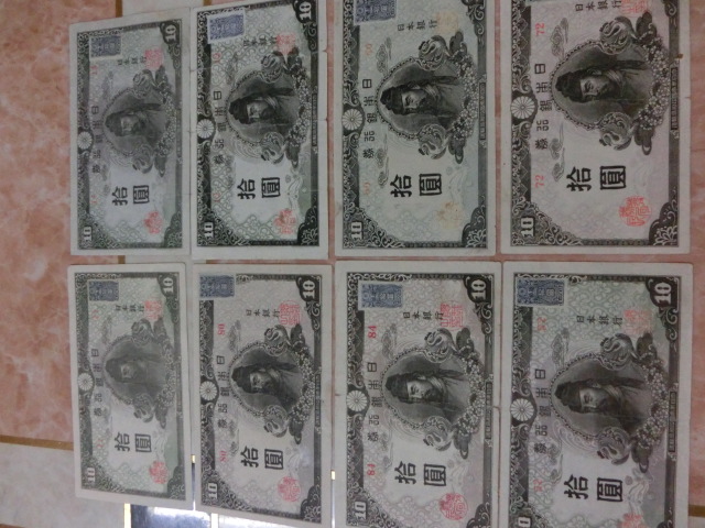 再改正不換紙幣10円 4次10円の前期4枚・後期4枚で証紙付を8枚セットです。