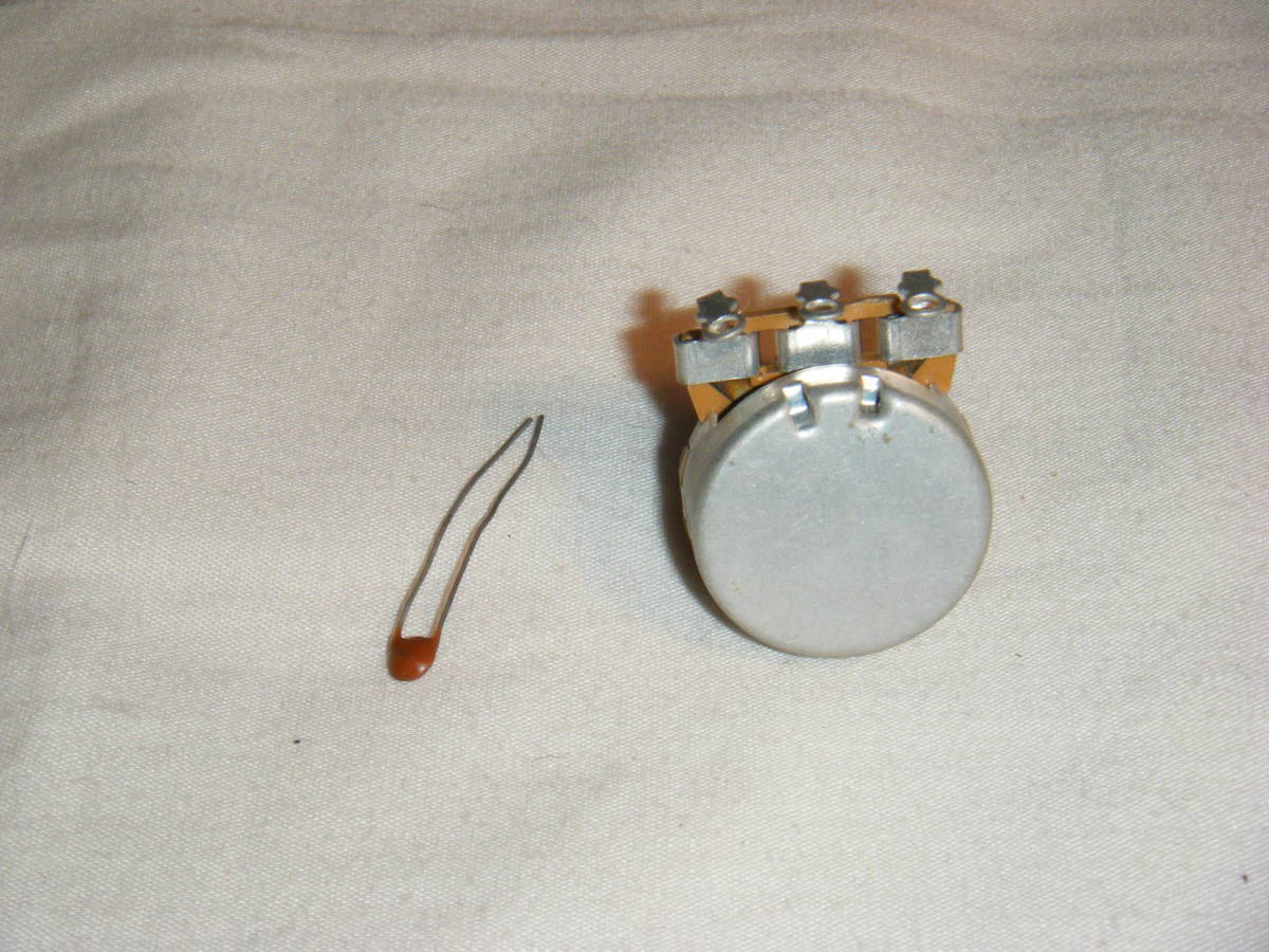 ポットそれぞれにコンデンサーがハンダ付け、もしくは付属しています。
