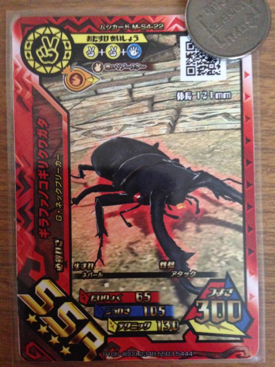 新ムシキング 超神化 4弾 SSR 赤目 ギラファノコギリクワガタ チョキ 地のVブースター M-S4-22 カナト透かし