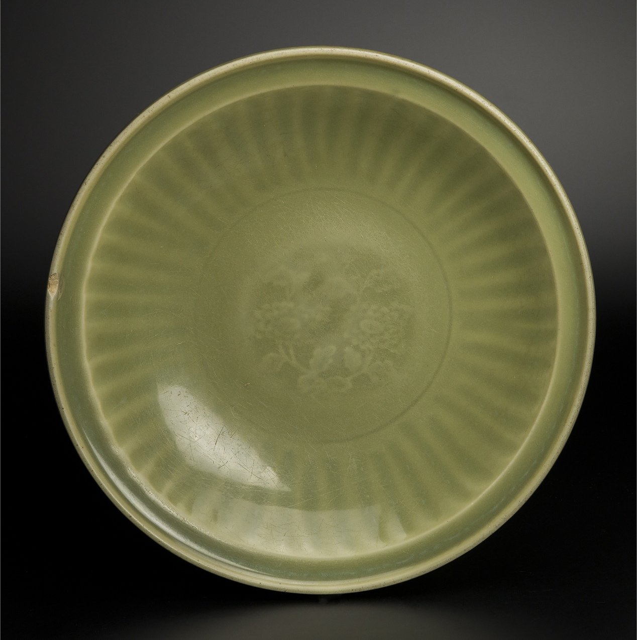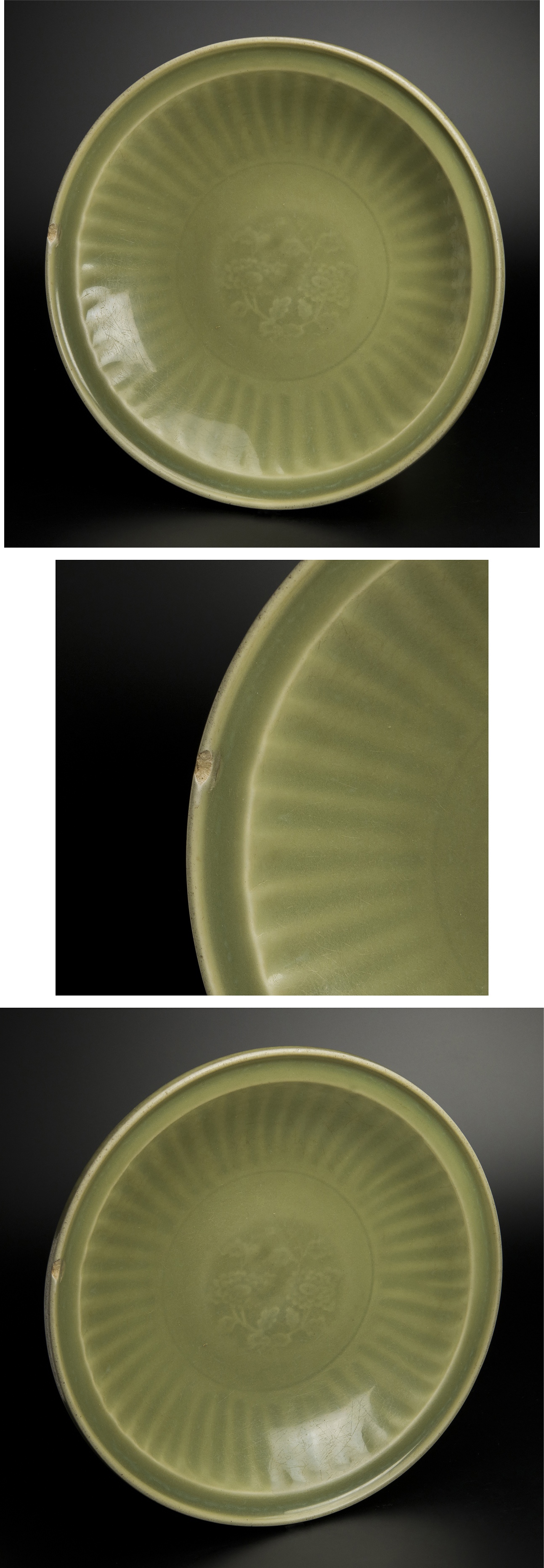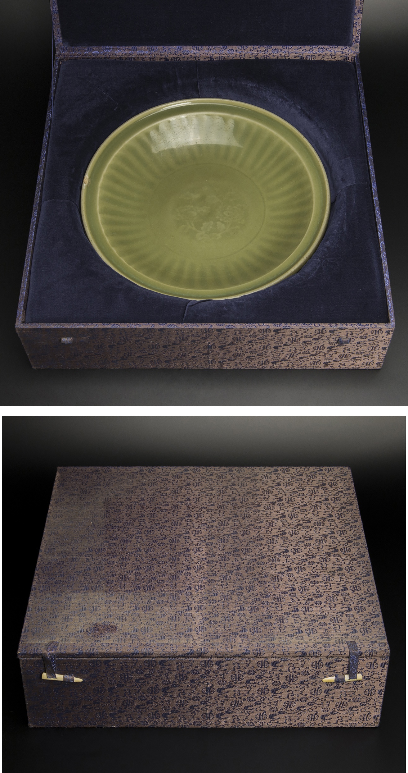 明 龍泉窯 青釉菊瓣盤 共箱 中国 古美術