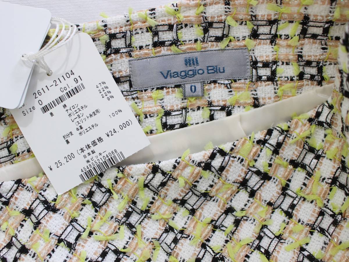 新品*ビアッジョブルー ViaggioBlu*ツイードチェック フリンジスカート(0)定価24,000円/a141