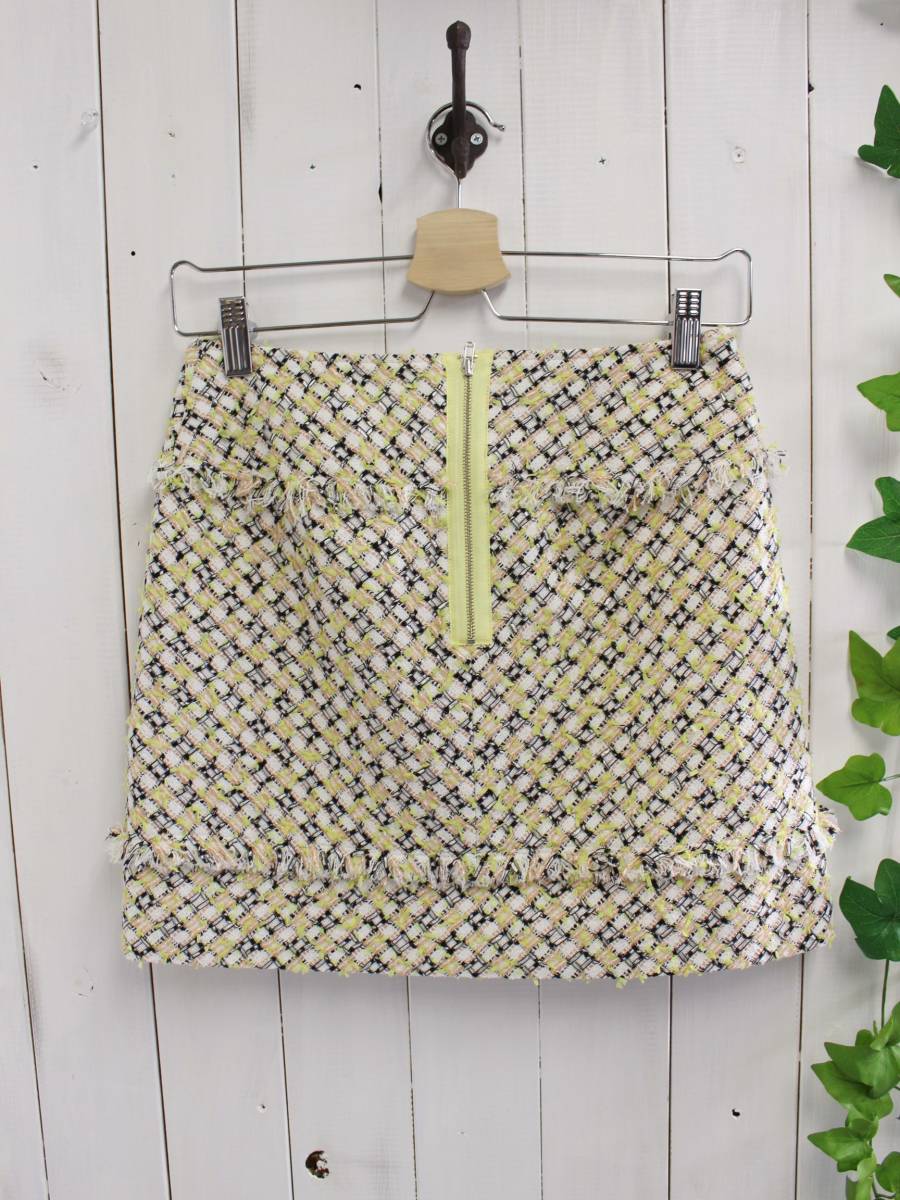 新品*ビアッジョブルー ViaggioBlu*ツイードチェック フリンジスカート 0 定価24,000円