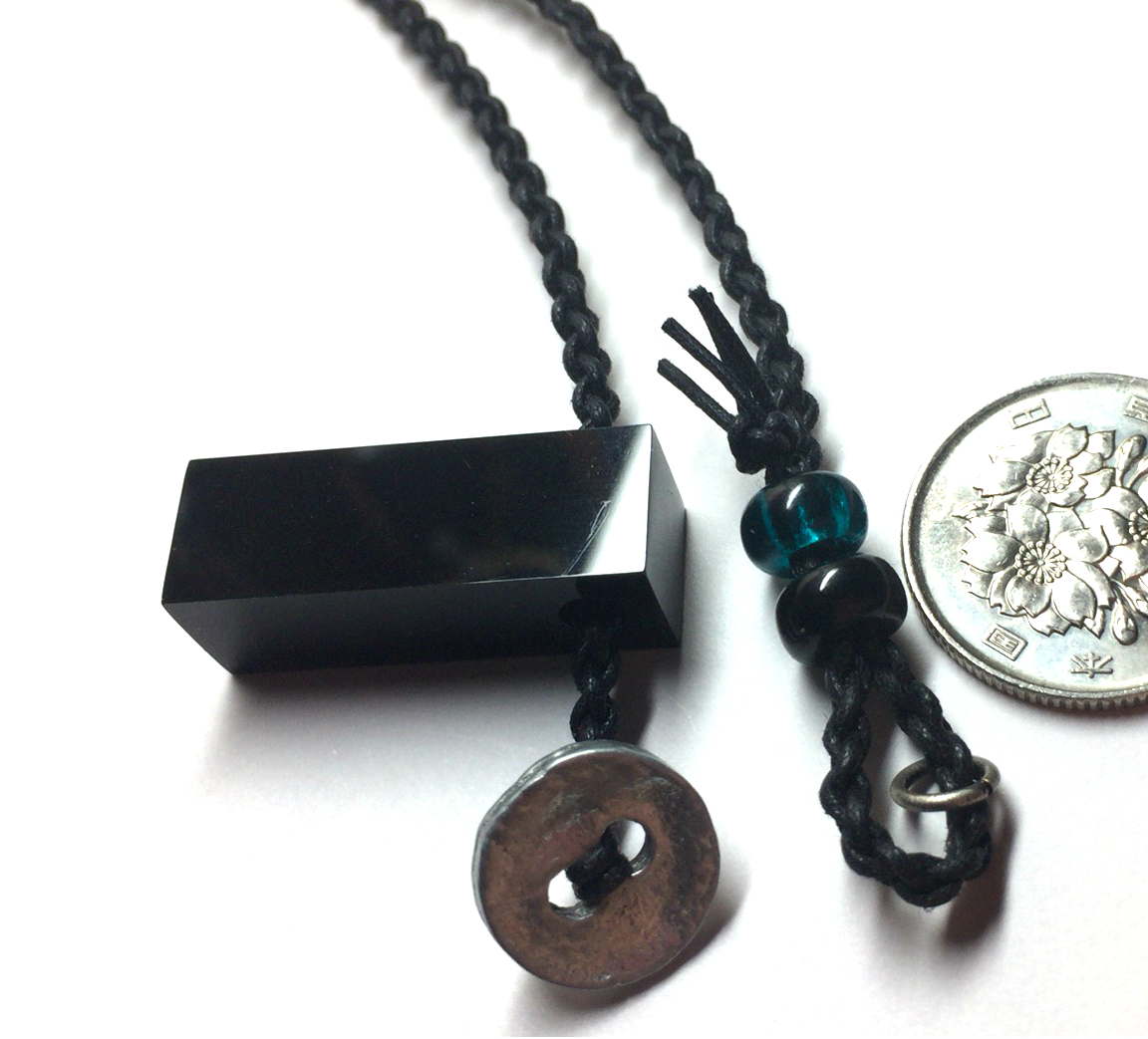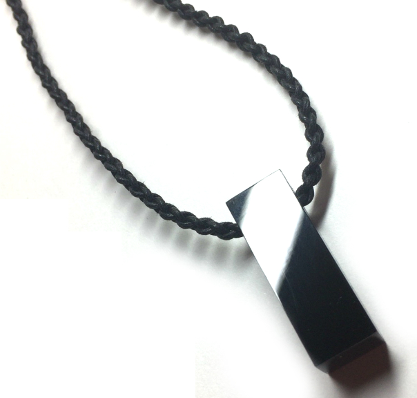 黒く艶のあるモノリスのようなアクリル製角柱モチーフをペンダントトップに使用し