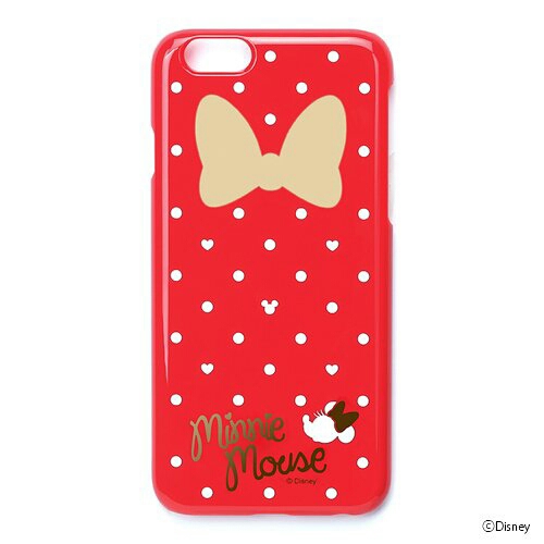 赤いケースに金箔押ししたミニーのリボン柄と白いドットのデザインが特長のiPhone 6専用のポリカーボネイトハードケースです。