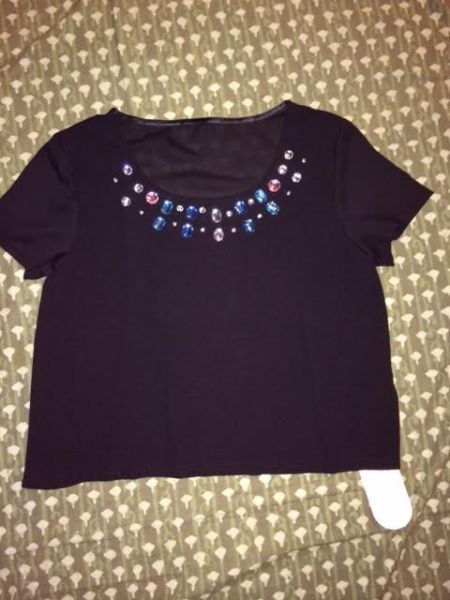 実寸は平置きの場合、着丈:48cm、肩幅:39cm、身幅:45cm、袖丈:15cmです