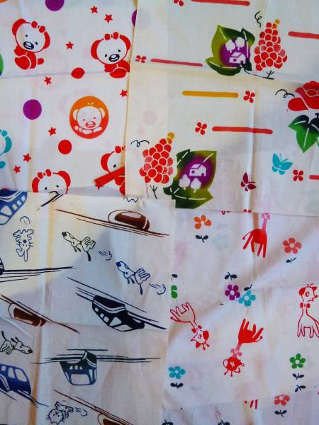 | 古い★浴衣地・見本端切れ6枚セット・ワンちゃん・キリンなど・昭和レトロ★ | |