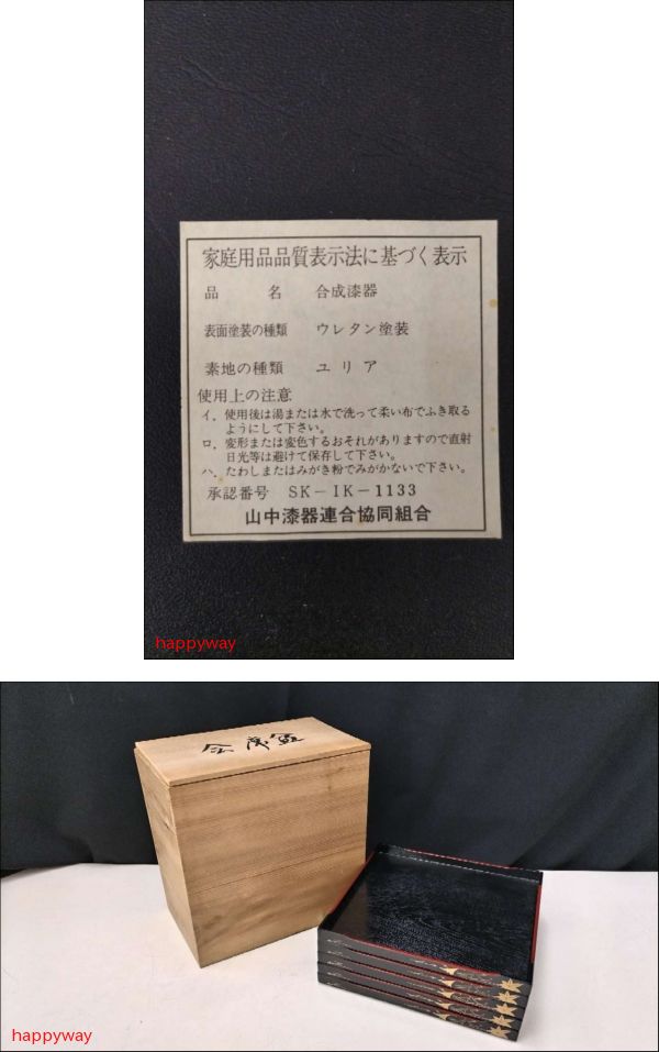 | 1円~【美品】漆器 漆芸 山中漆器 会席盆 菓子盆 菓子器 茶会席 会席膳 角型 5客揃 共箱入り ※同梱不可【保管品】100 | ||