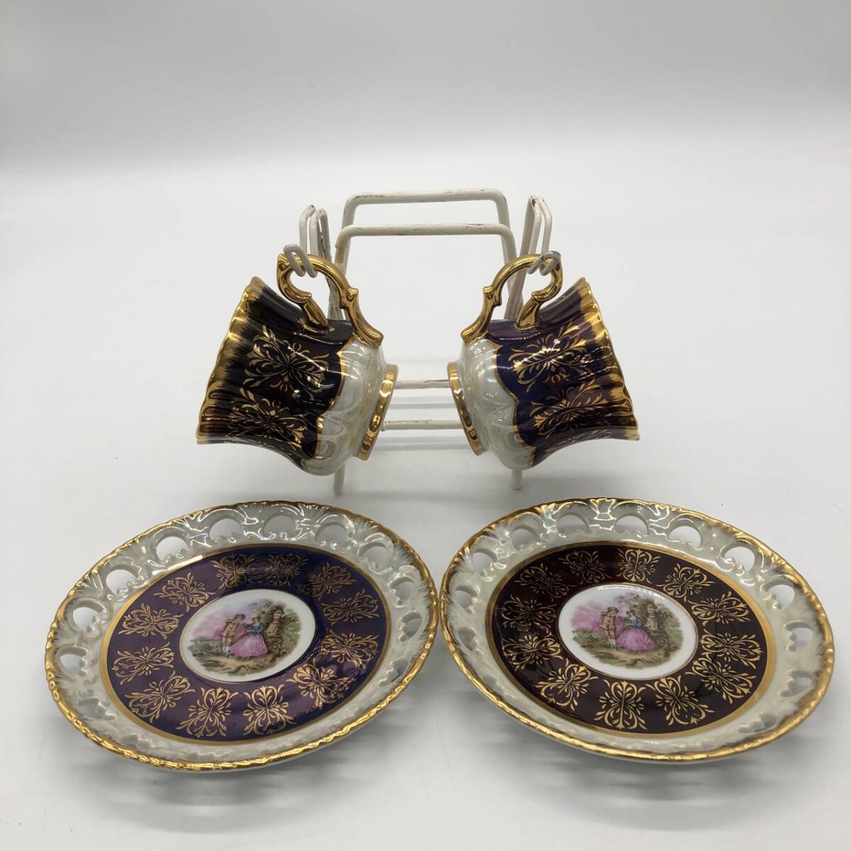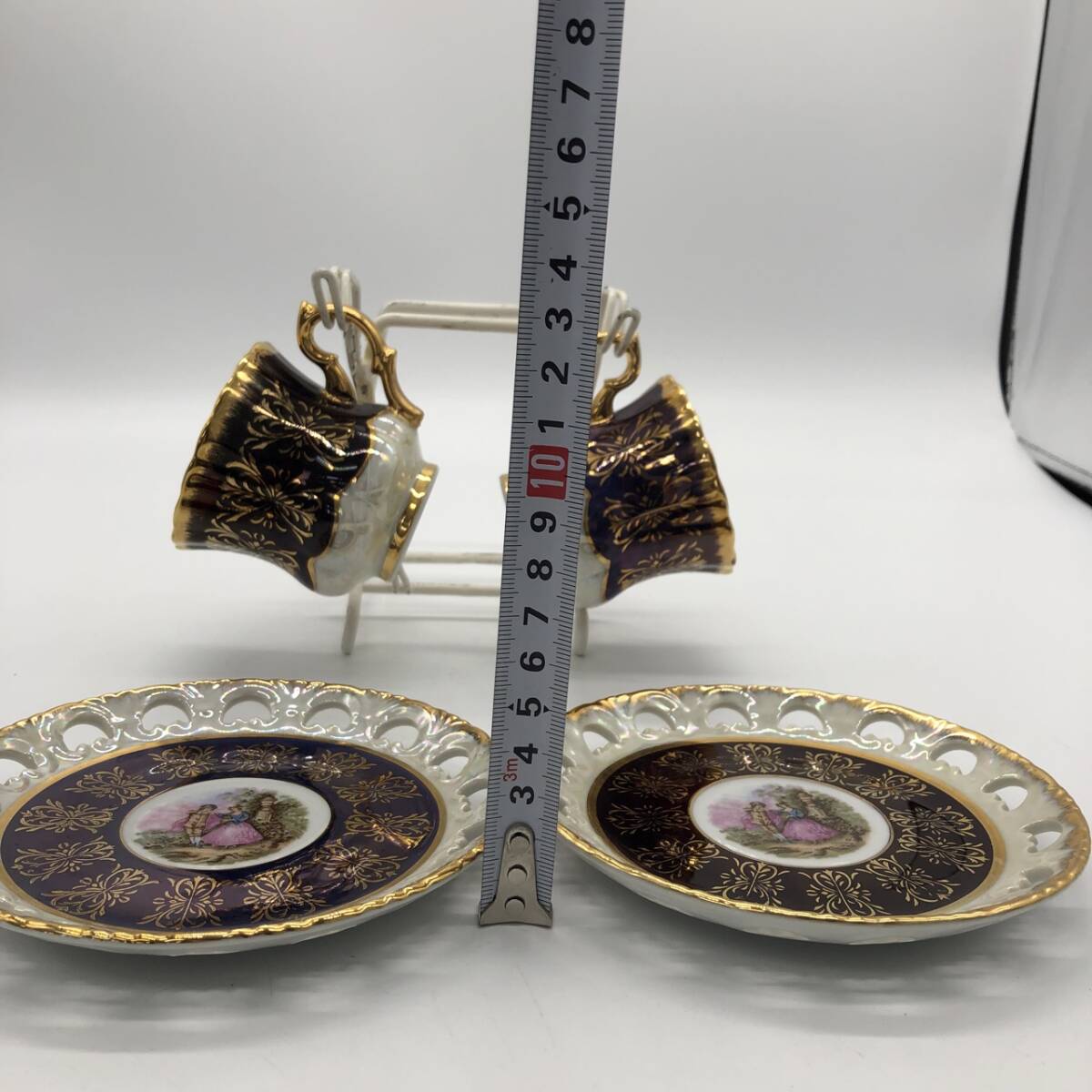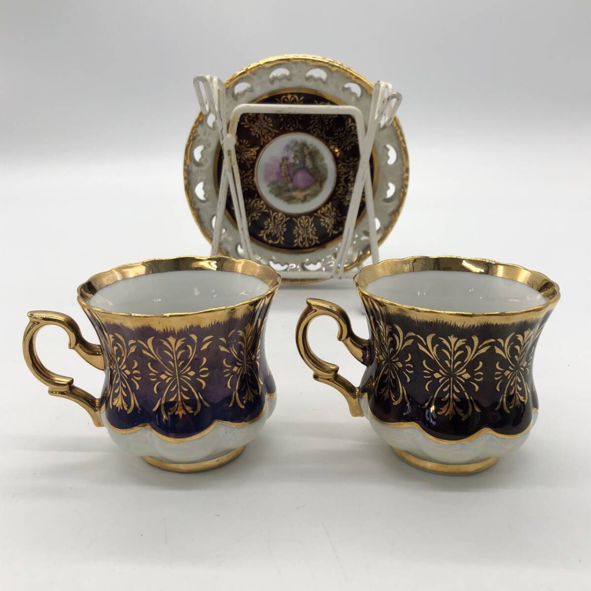| 商品説明 | 譲り受けた物ですが使用しないので出品いたします。 専門知識が無いので、いただいた質問に答えられない場合があります。 おおよそのサイズは写真をご覧ください。 スタンド付きですがアンティーク調の風合いがあるお品です。 カップ、ソーサー共にスレや剥がれなど使用感あるお品です。 ご了承の上落札ください。 商品に直接プチプチをまいた簡易梱包にて発送いたします。 以上ご確認の上、必ず写真でご判断頂ける方のみご入札ください。 ≪注意事項≫ ※商品の送料に関しましては本文下部に記載しておりますのでご確認ください。※※ ・写真に写っているものが全てです。キズ、ヨゴレ等、状態については画像にてご自身でご確認いただき、画像にてご判断頂ける方のみご入札ください。 ・写真には写りきらないキズ・汚れ等ある場合がございます。予めご了承下さい。 ・商品の写真と実際の色がモニターの種類、照明の違い等により少し実物と違って見える場合があります。 ・商品をご理解の上、ノークレーム、ノーリターンでお願い致します。 ・商品落札当日、夕方以降のご質問には対応出来かねますのでご了承ください。 ・分かる範囲内で質問等にはできる限りお答えしますので、お気軽にお問い合わせください。 ≪お支払い方法≫ ■ヤフーかんたん決済 ※かんたん決済期日を取引期限といたします。期限を過ぎた場合は取引をキャンセルさせて頂きますので予めご了承ください。 ≪発送詳細≫ ※ゆうパック、商品によっては定型(外)郵便で対応致します。ライター等、郵便局が引き受けできない商品については佐川急便で発送いたします。 ※商品の発送は責任を持って行いますが、万が一の運送時の事故や破損、紛失等(特に定形郵便・定形外郵便)には責任を負いかねますので、発送方法等は十分にご考慮のうえお選びください。 ※実際に梱包した際にサイズ、重量に差異が出る場合が御座いますが、差異分の追加請求または返金の対応はしておりません。 ※その他の発送を希望される場合は事前に、落札前にご連絡下さい。 ※こちらの商品は岐阜県からの発送になります。 ※出来る限り迅速な対応を心がけていますが、個人出品になりますので、ご連絡が遅れる場合があります。 ※ご入金後、3日前後で発送いたしますが、土日祝・盆・年末年始等は発送が遅れる場合があります。 ★上記の内容に理解を得られる方、また画像で判断できる方のみご入札をお願いします。 | |
