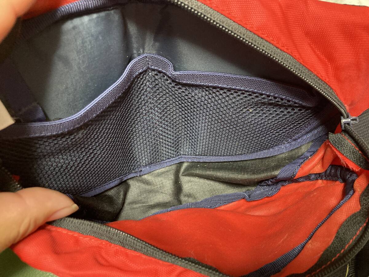 メインポケット部には仕切りの付いたメッシュポケットやフックが取り付けられております。