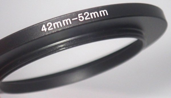 フィルター径42mmのレンズに52mmのフィルターを使用するためのアルミ合金製リングです。
