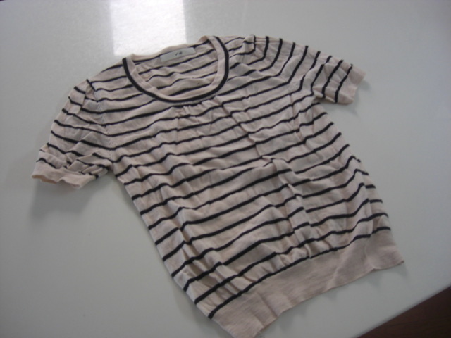 美品エフデ 後ろリボンボーダー半袖ニット