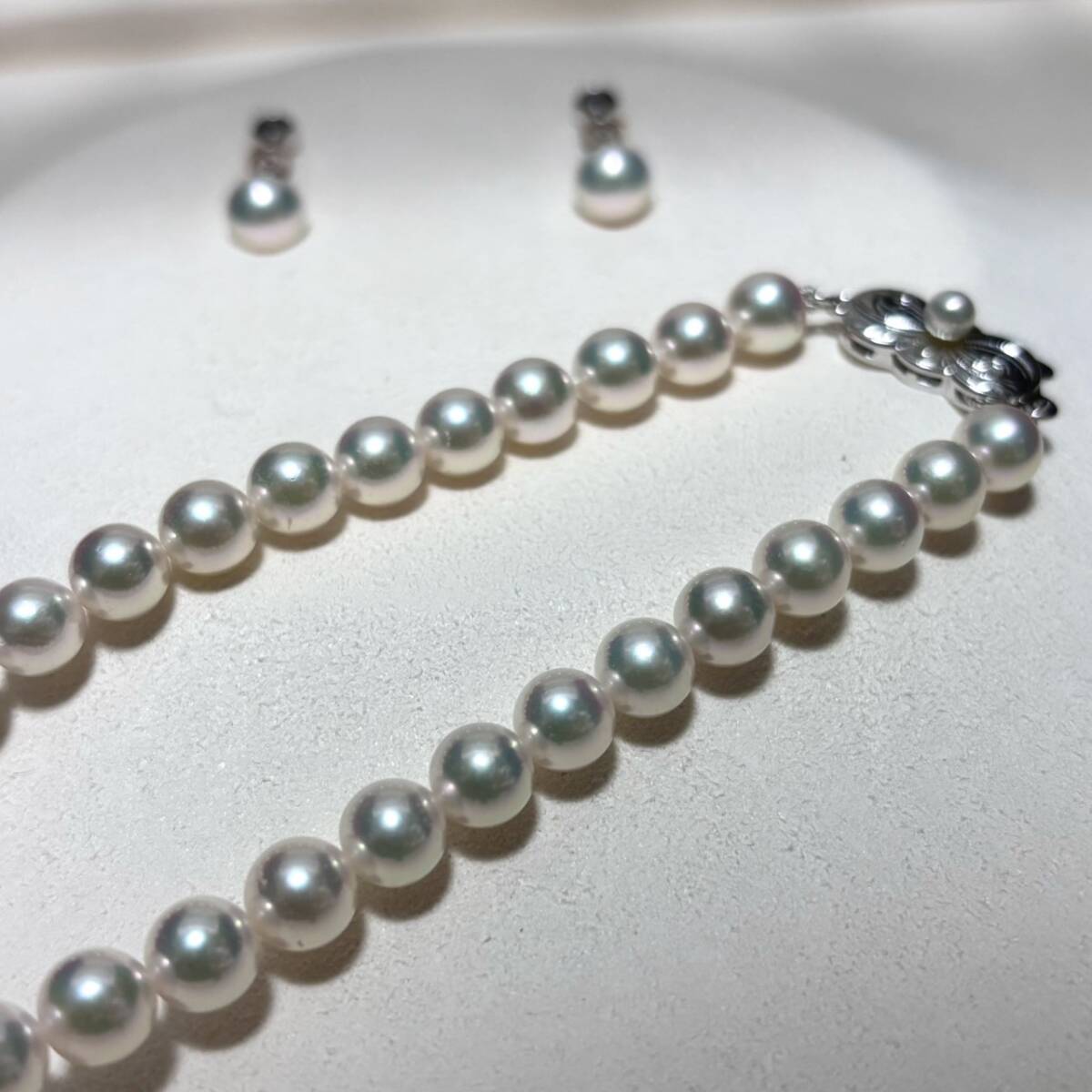 【テリ最強/K18】MIKIMOTO/ミキモト あこや真珠 パール ネックレス イヤリングセット Mチャーム 6.5mm-7mm シルバー金具 28g 43.5cm アコヤ