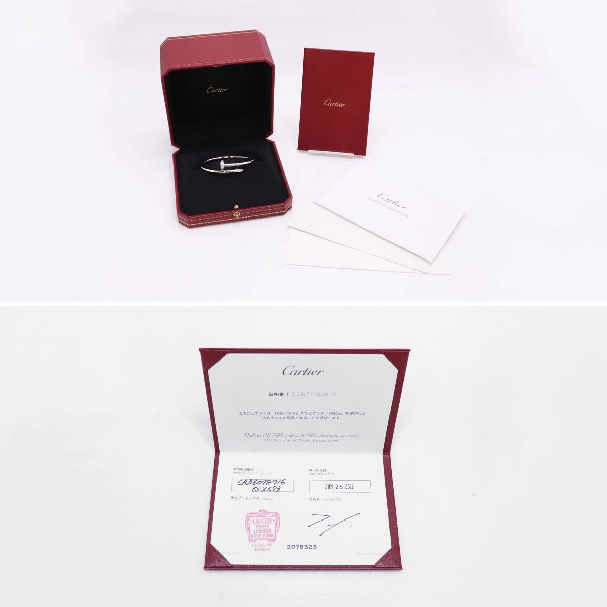 新品同様 Cartier カルティエ Juste un Clou bracelet ジュスト アン クル ブレスレット K18WG 0.58ct #16 約31.6g B6048716 送料無料!!
